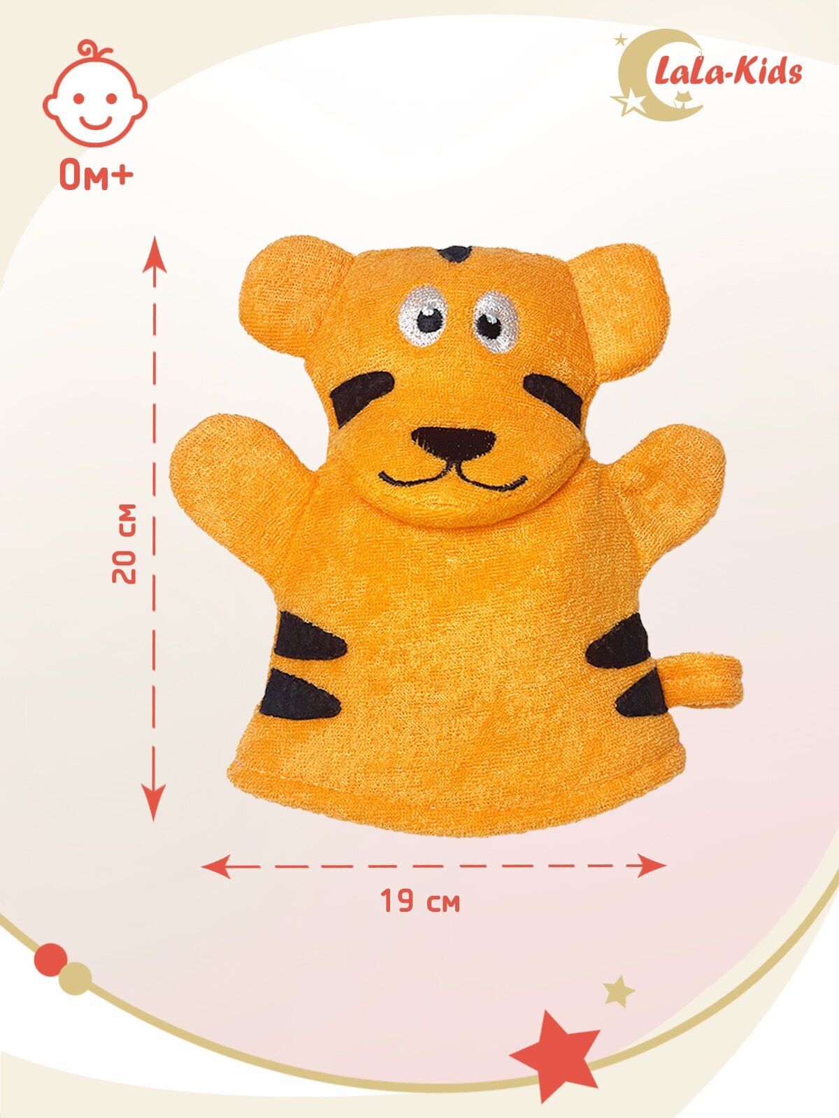 Купить Мочалка-варежка детская с петелькой "Тигр" рукавичка детская 20см