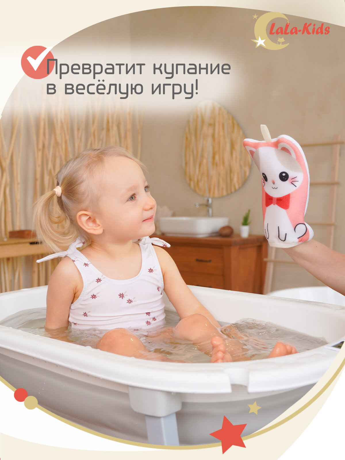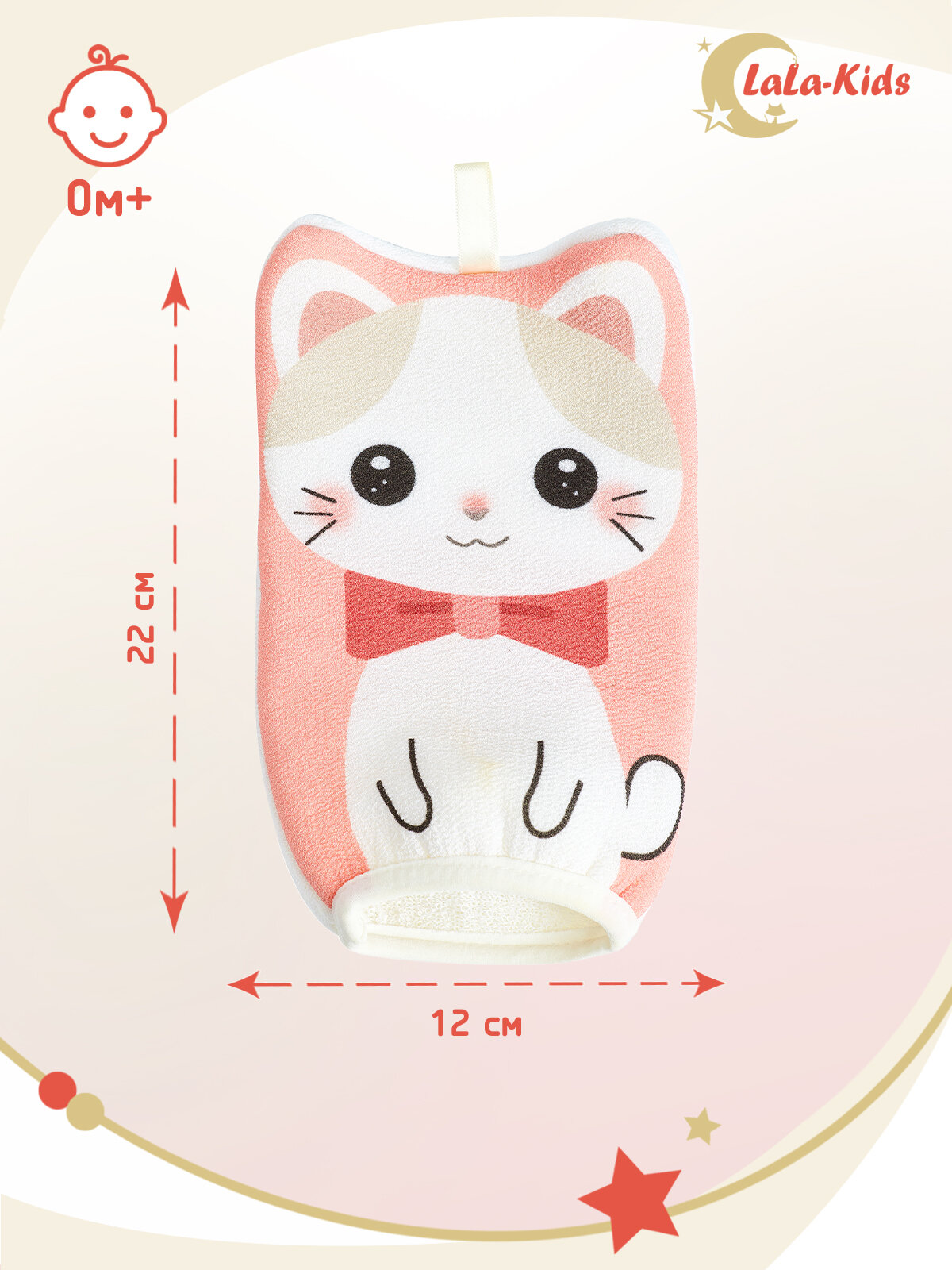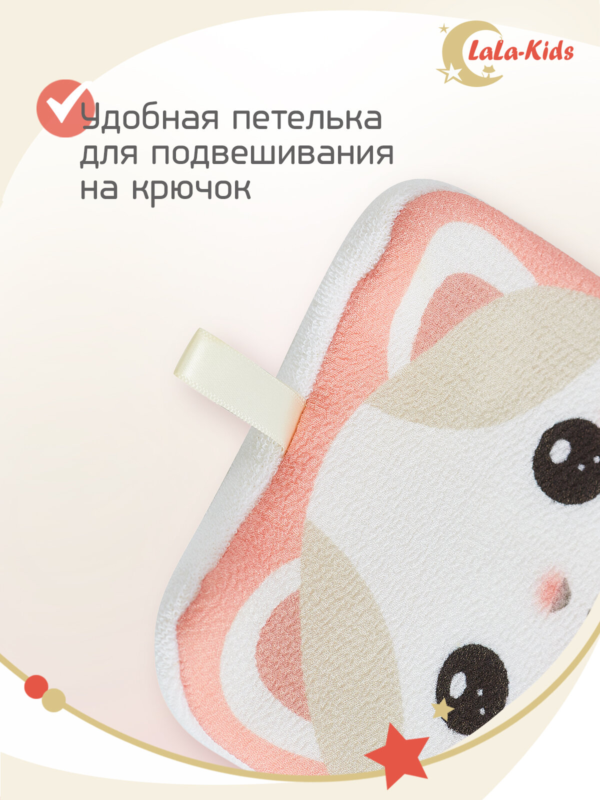 Купить Мочалка-варежка детская с петелькой "Котенок" рукавичка детская 22см