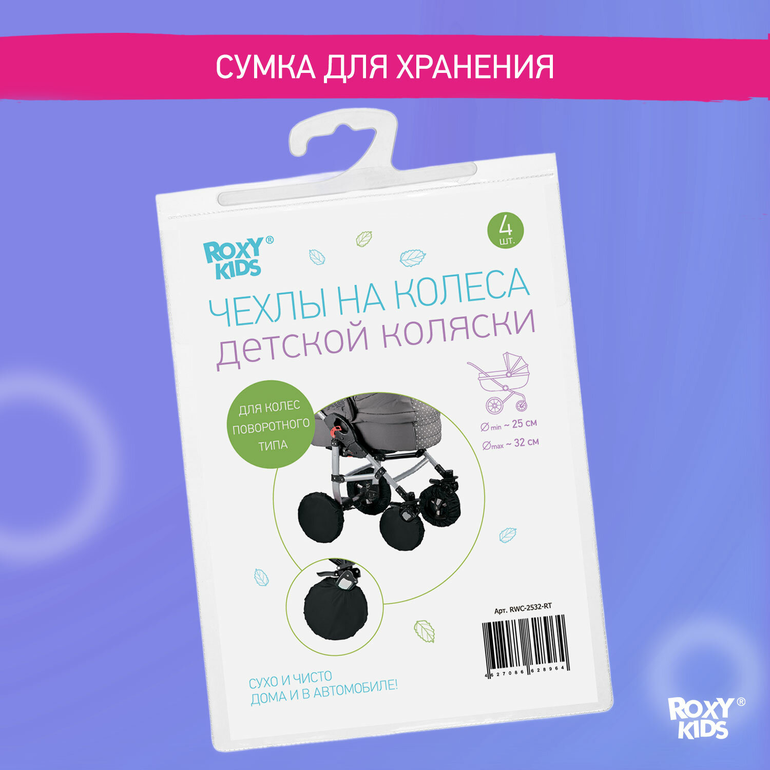 Купить Чехлы на колёса для коляски с поворотными колёсами на резинке ROXY-KIDS, 4 шт. цвет черный