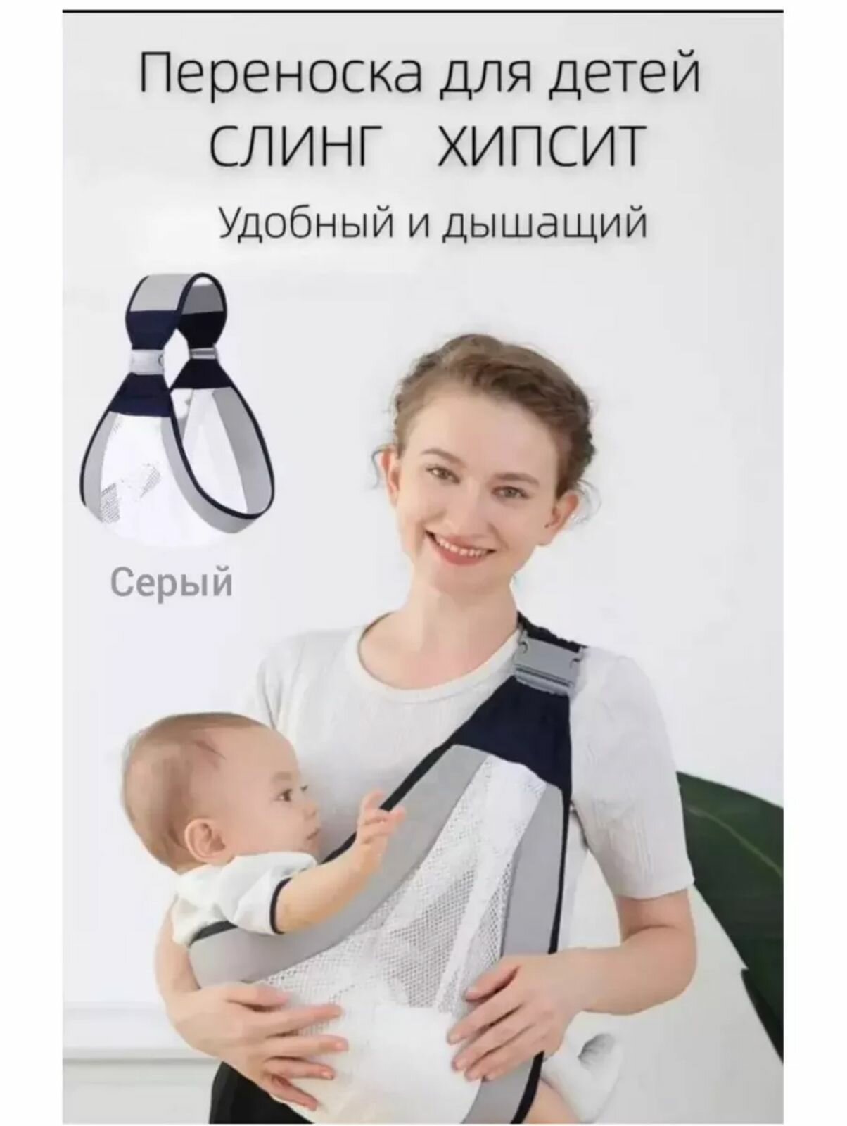 "Переноска для малыша" - Слинг для новорожденных серый