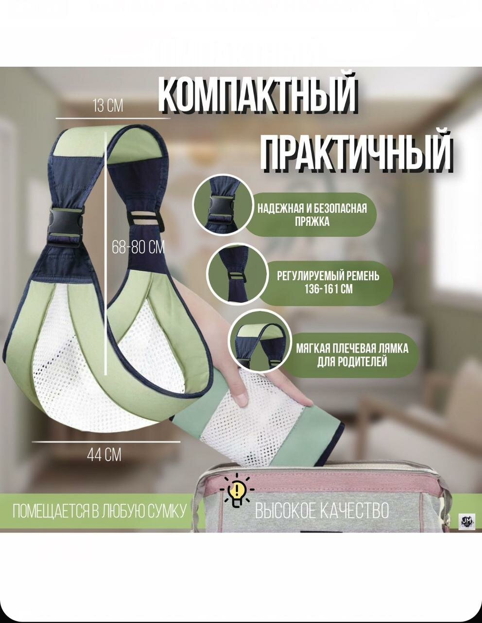 "Переноска для малыша" - Слинг для новорожденных зеленый