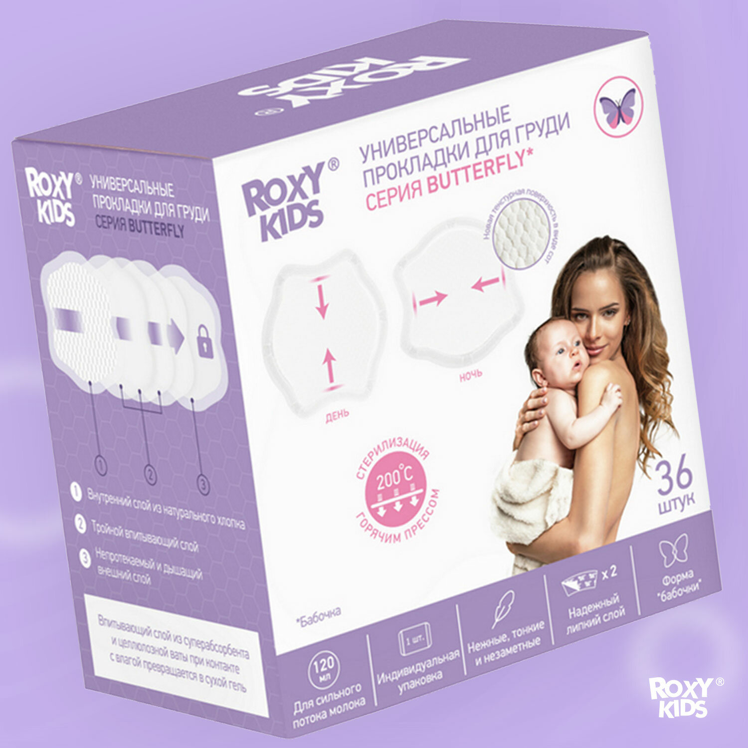 Купить Прокладки гелевые лактационные универсальные для груди в бюстгальтер BUTTERFLY от ROXY-KIDS 120 мл, 36 шт