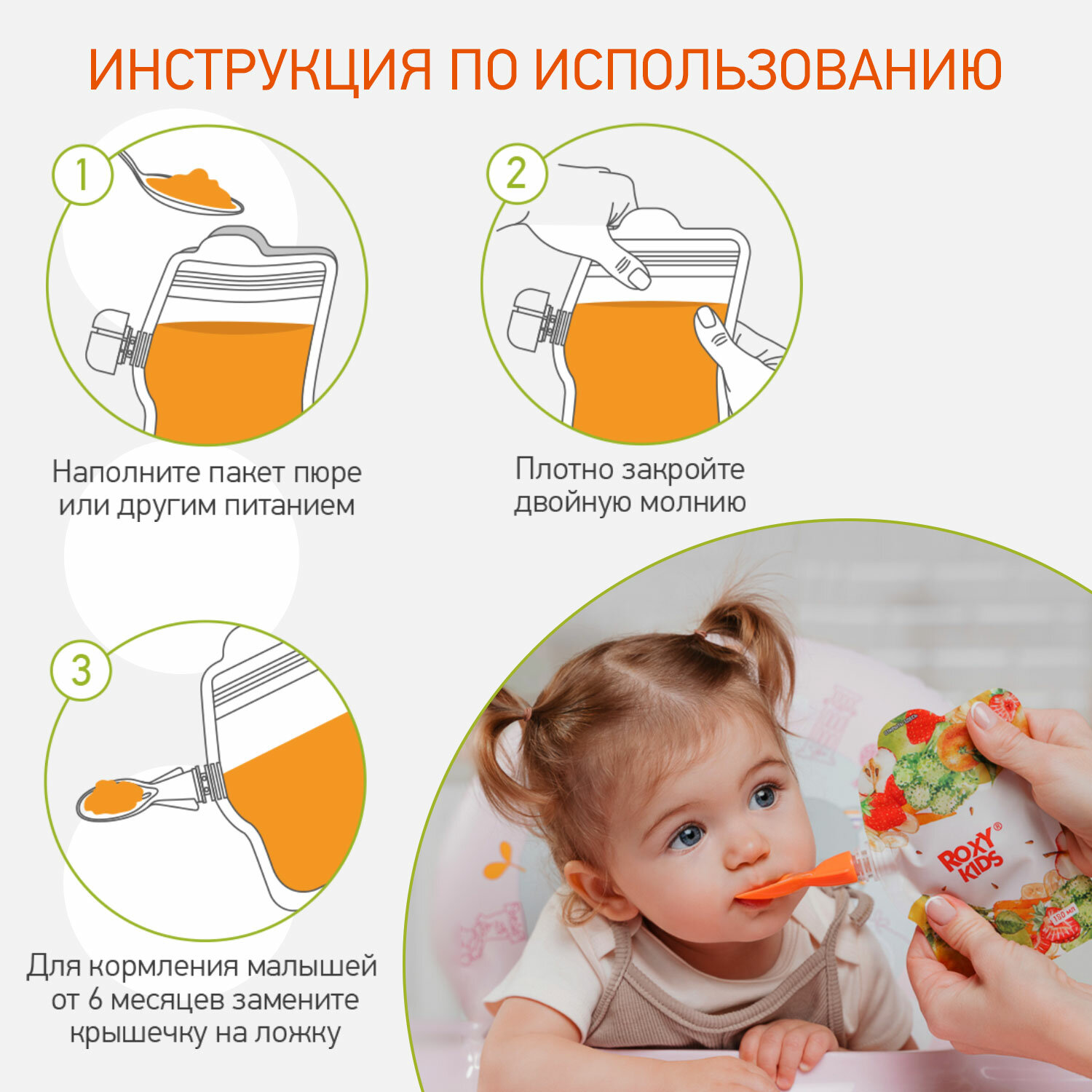 Купить Многоразовые пакеты для хранения детского питания 5 шт с ложкой-накруткой ROXY-KIDS