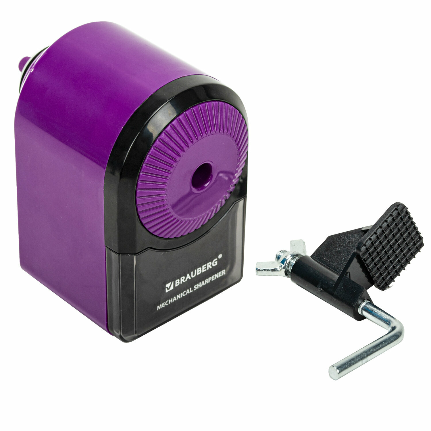 Купить Точилка для карандашей с контейнером механическая настольная BRAUBERG ULTRA для простых и цветных карандашей, корпус сиреневый, 271341