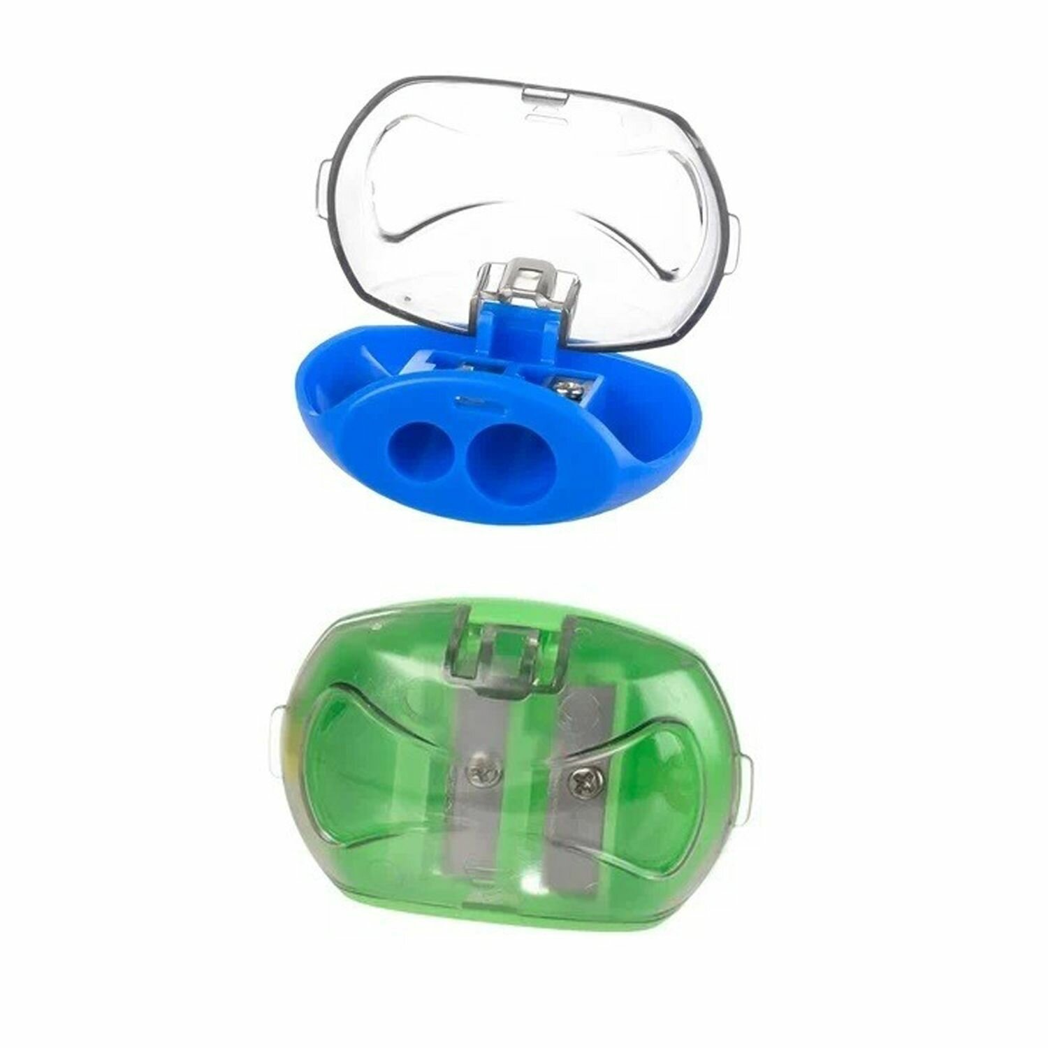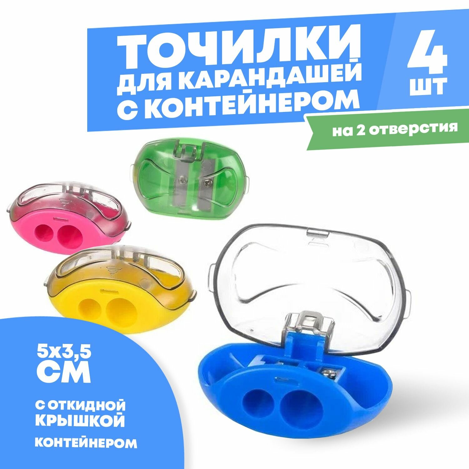 СохранитьТочилки для карандашей, 4 шт, на 2 отверстия с контейнером и откидной крышкой, MC-Basir, набор двойных канцелярских пластиковых точилок для школы интересное: