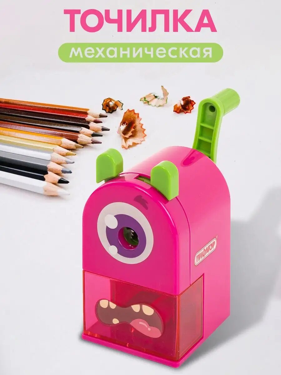 Точилка механическая пифагор "Монстрик", корпус розовый, для чернографитных и цветных карандашей, 229716