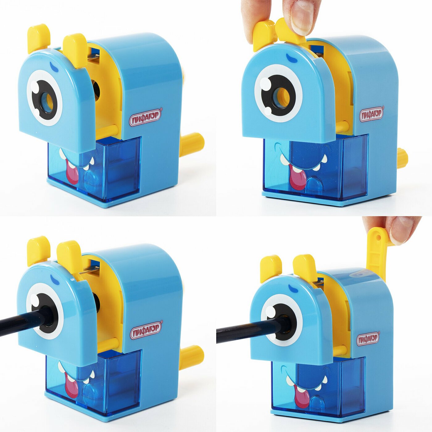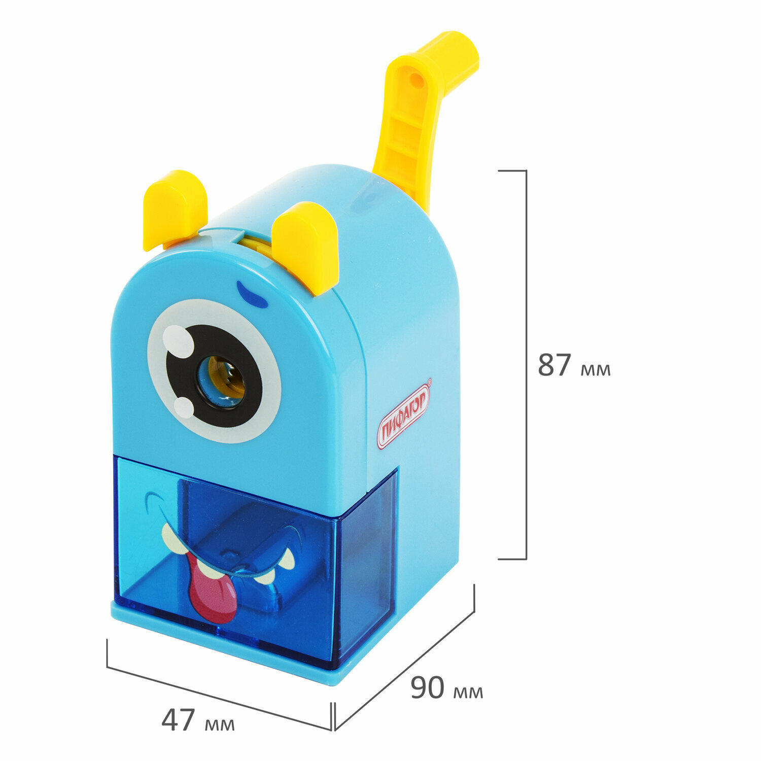 Купить Точилка механическая Пифагор "Монстрик" голубой, для чернографитных и цветных карандашей