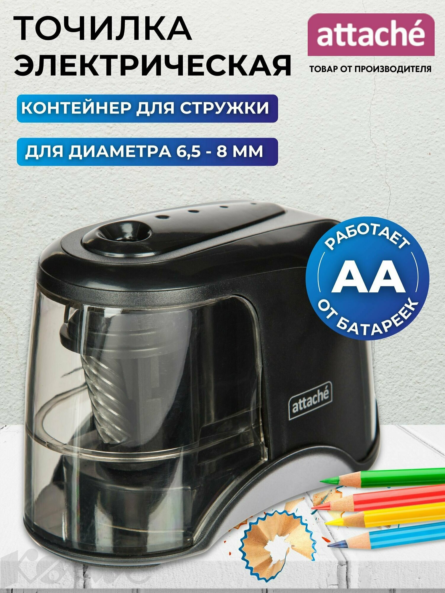Точилка электрическая Attache , стальное спиральн. лезвие, батарейки AA, черный