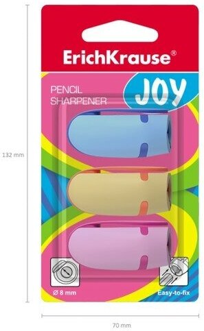 Точилка 1 отверстие ErichKrause Joy, 3 штуки, в блистере, микс./В упаковке шт: 1 интересное: