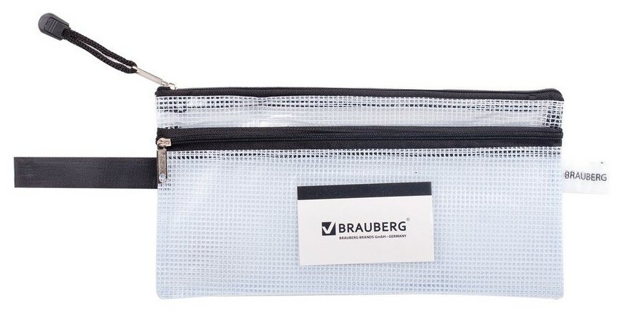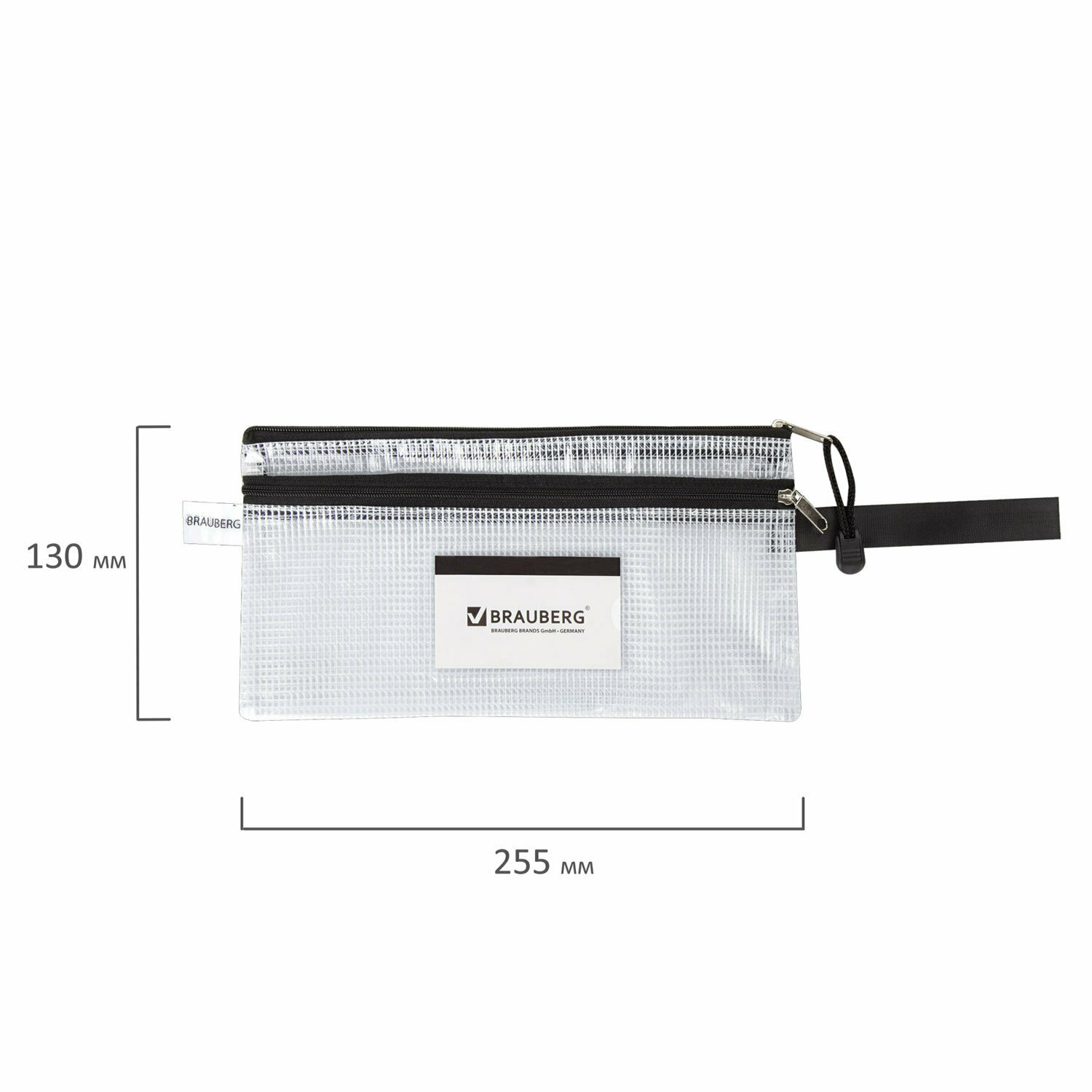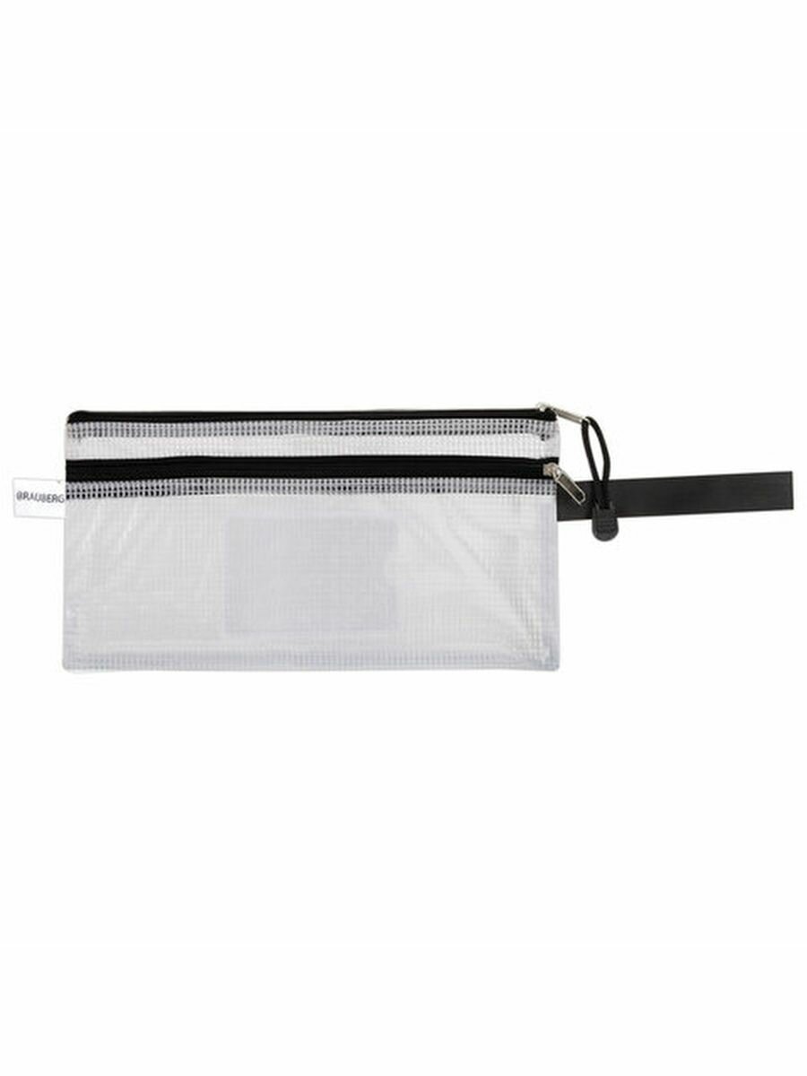 Папка-конверт Brauberg На молнии "Solid", 255х130 мм, ПВХ, сетка, 300 мкм, 2 отделения, прозрачная (223891)