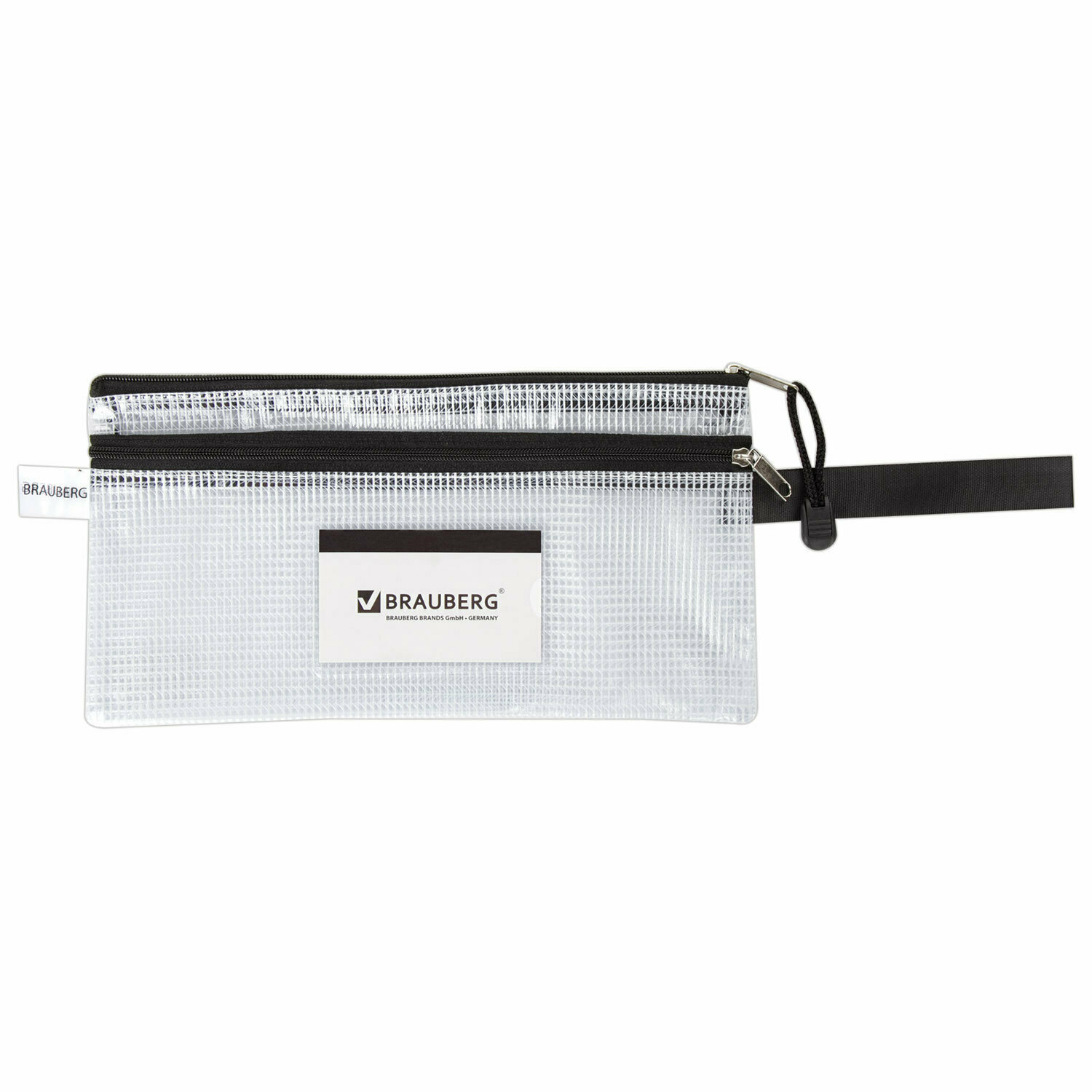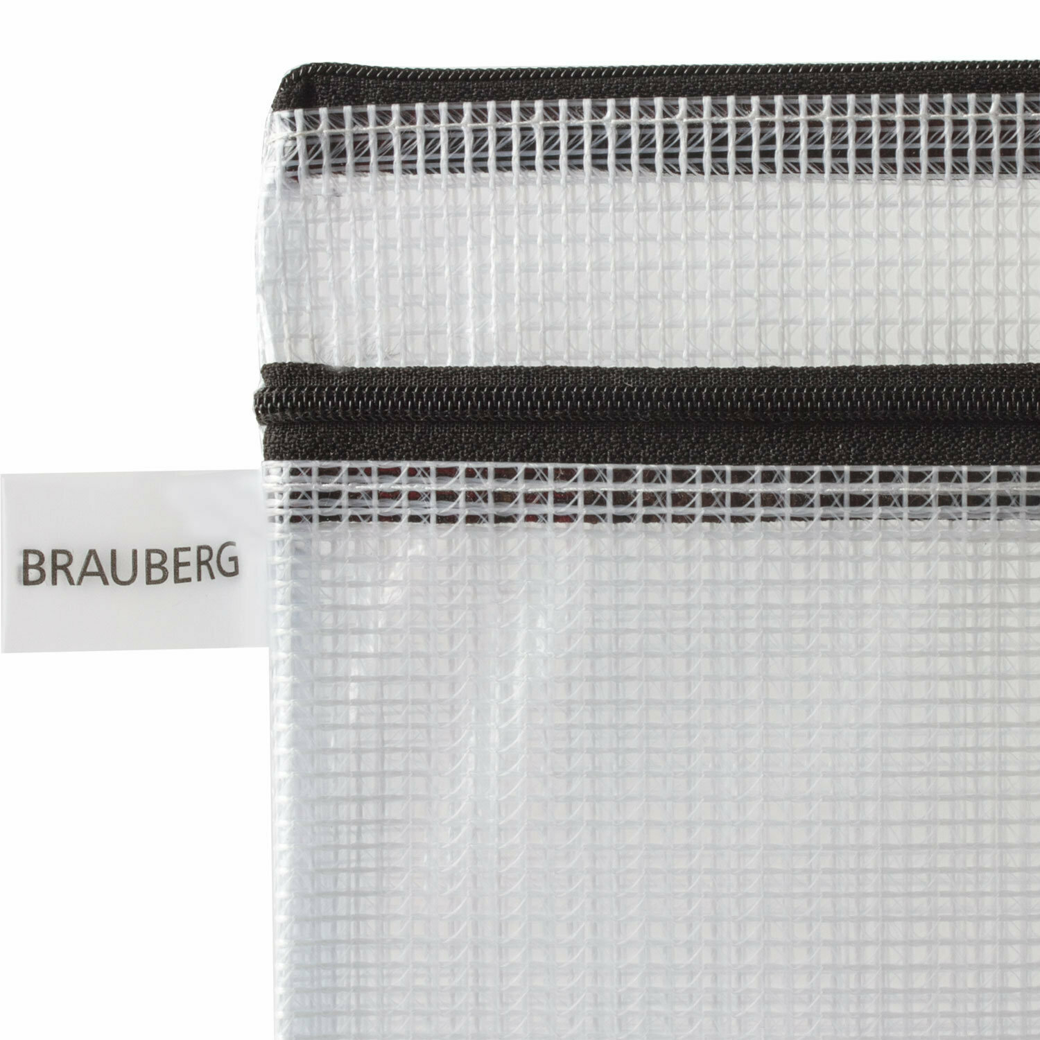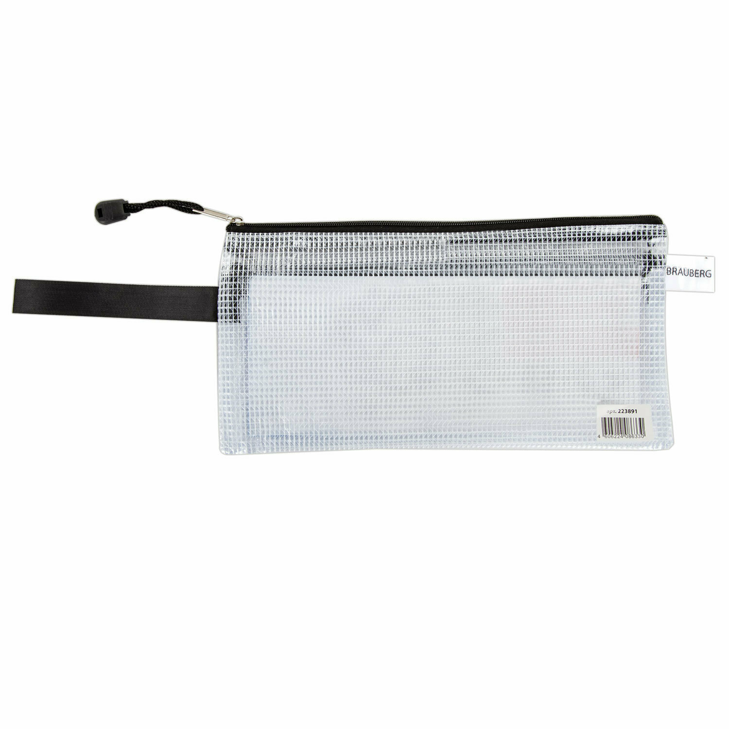 Папка-конверт Brauberg На молнии "Solid", 255х130 мм, ПВХ, сетка, 300 мкм, 2 отделения, прозрачная (223891)