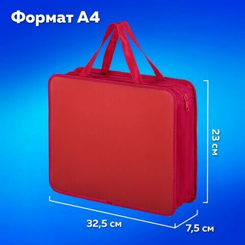 Папка на молнии с ручками пифагор, А4, 1 отделение, пластик, 75 мм, синяя, 228233