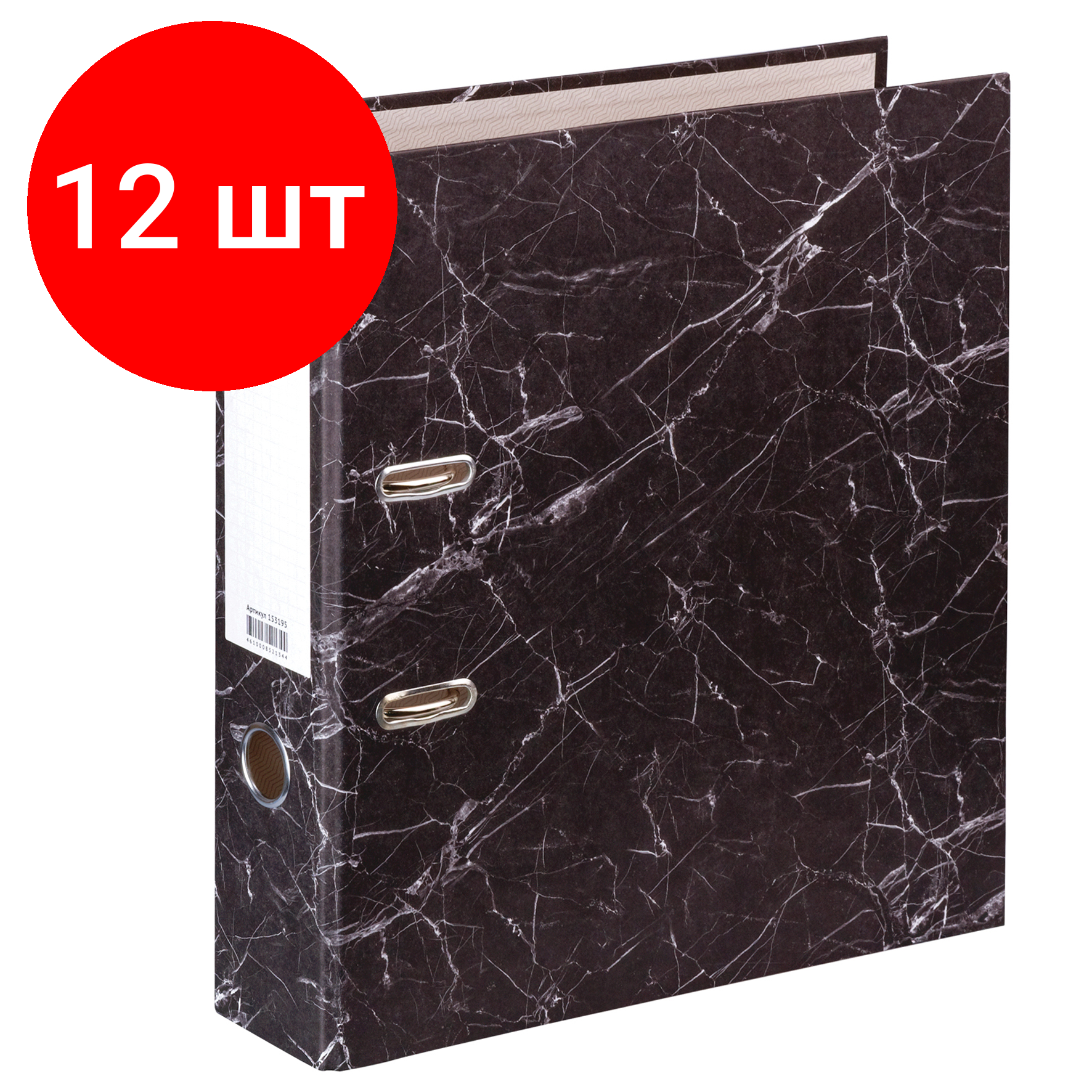 Купить Комплект 12 шт, Папка-регистратор OfficeSpace, 70мм, мрамор, черная
