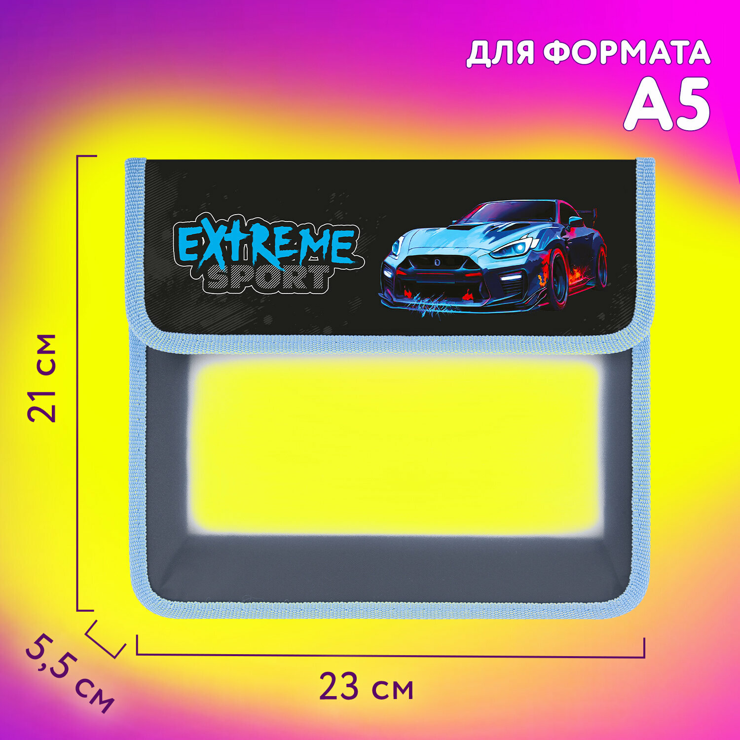 Купить Папка для тетрадей, труда и документов А5 для мальчика на липучке, канцелярия для школы, 2 отделения, пластик, Юнландия Extreme, 272190