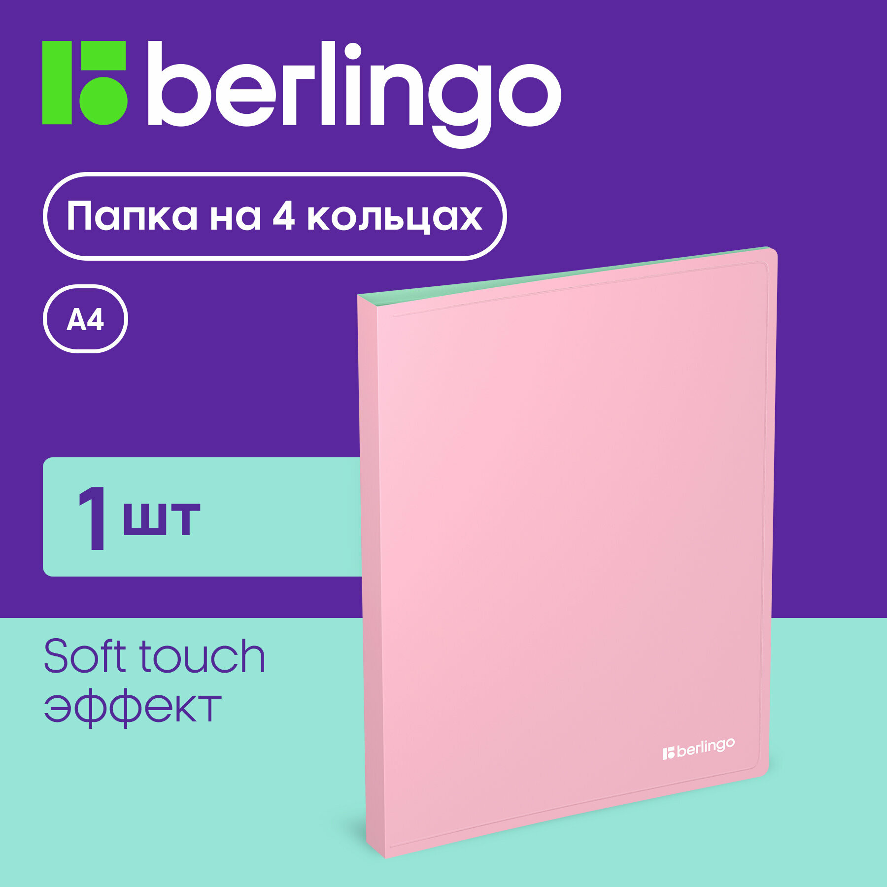 Купить Папка на 4 кольцах Berlingo "Haze" А4, 24мм, 600мкм, D-кольца, с внутр. карманом, розовая, софт-тач