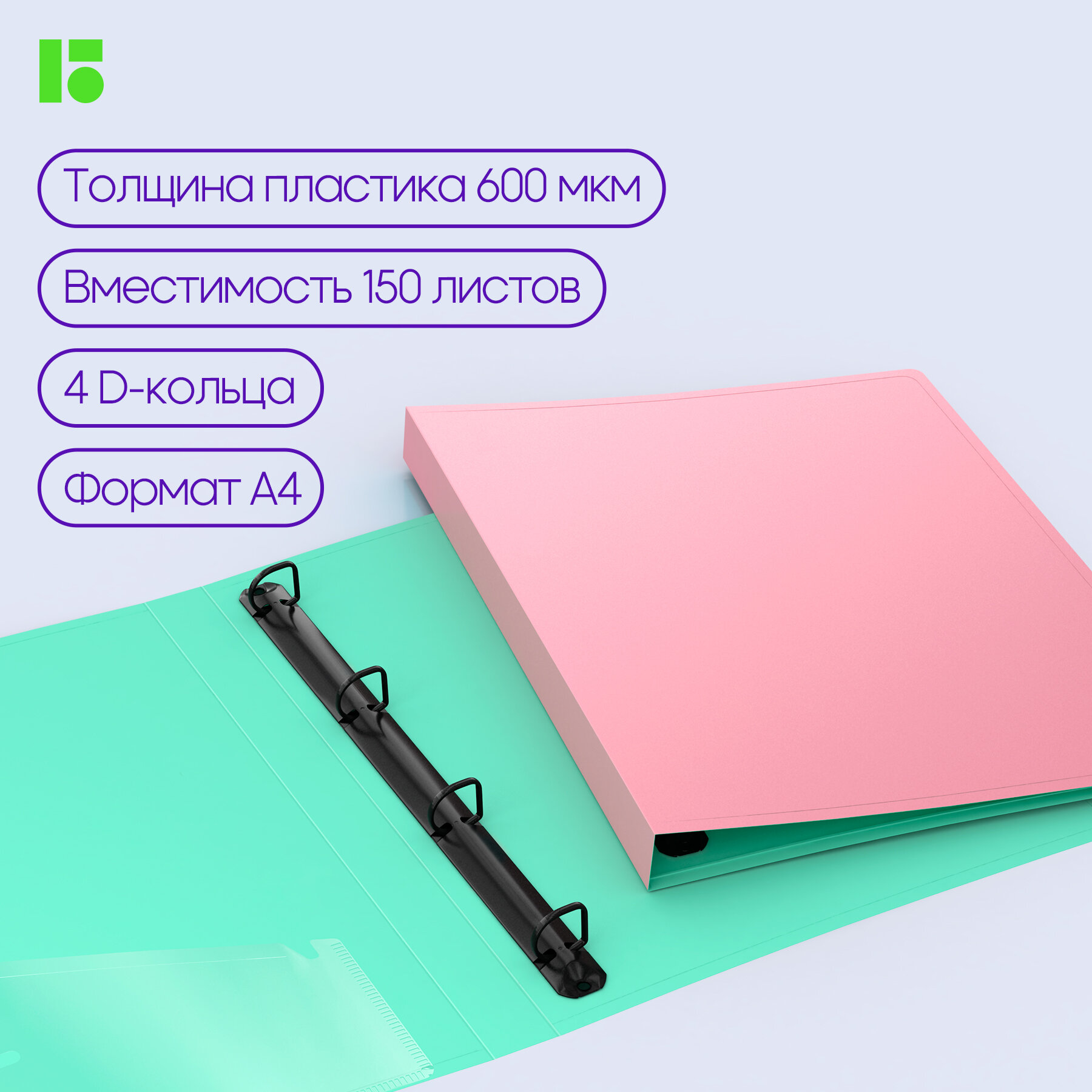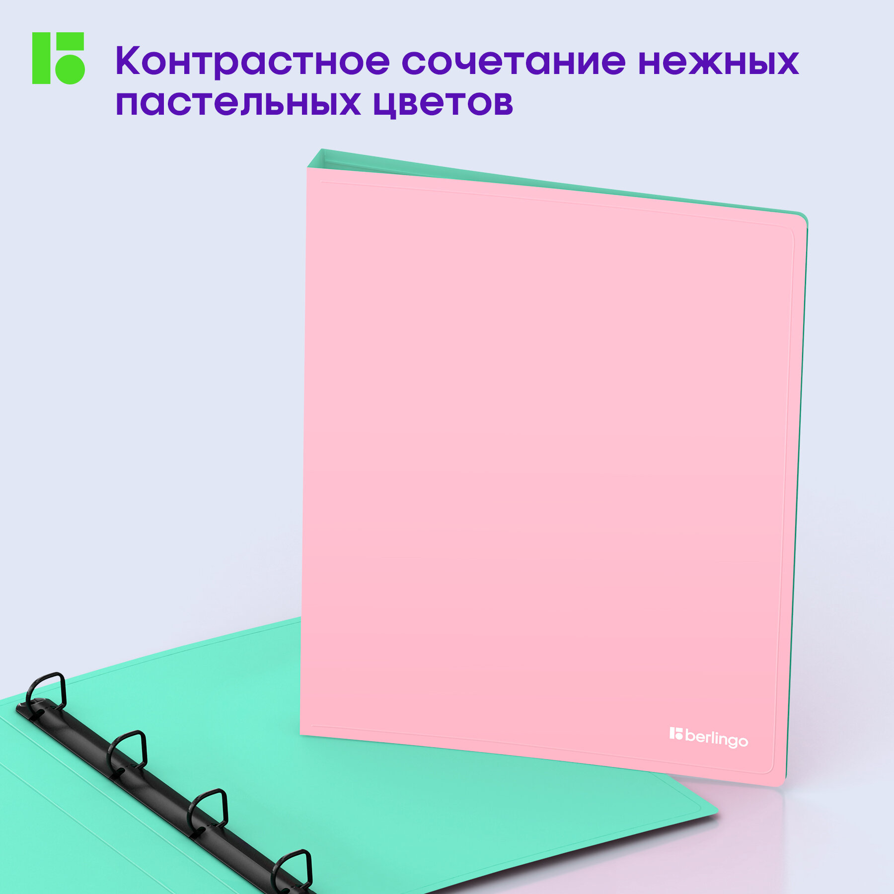 Папка на 4 кольцах Berlingo "Haze" А4, 24мм, 600мкм, D-кольца, с внутр. карманом, мятная, софт-тач
