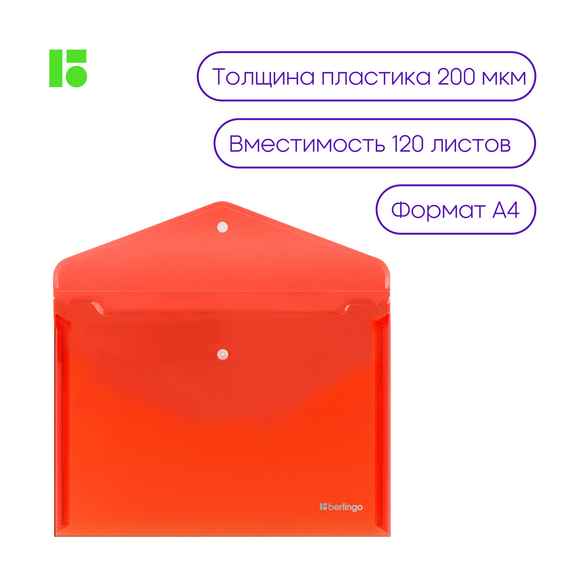 Папка-конверт на кнопке Berlingo "No Secret", А4, 200мкм, красная, (12шт.)
