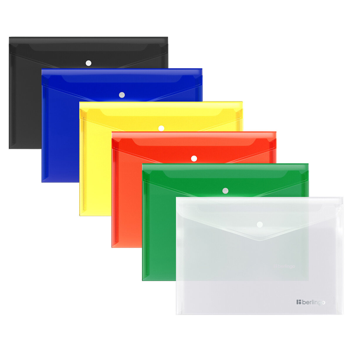 Набор 12 шт. - Папка-конверт на кнопке Berlingo "No Secret", А4, 200 мкм, вертикальная, прозрачная