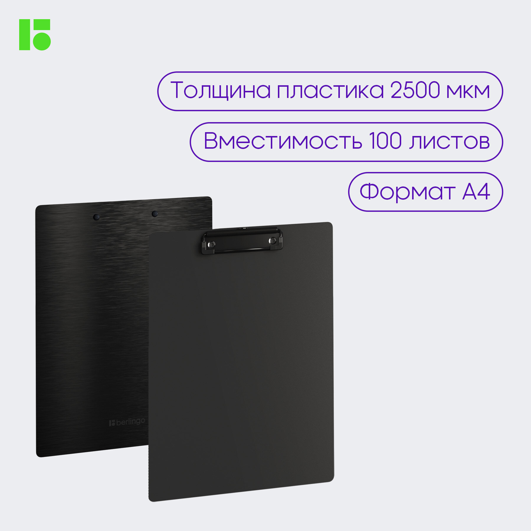 Комплект 2 шт, Планшет с зажимом Berlingo "Steel&Style" А4, пластик (полифом), черный