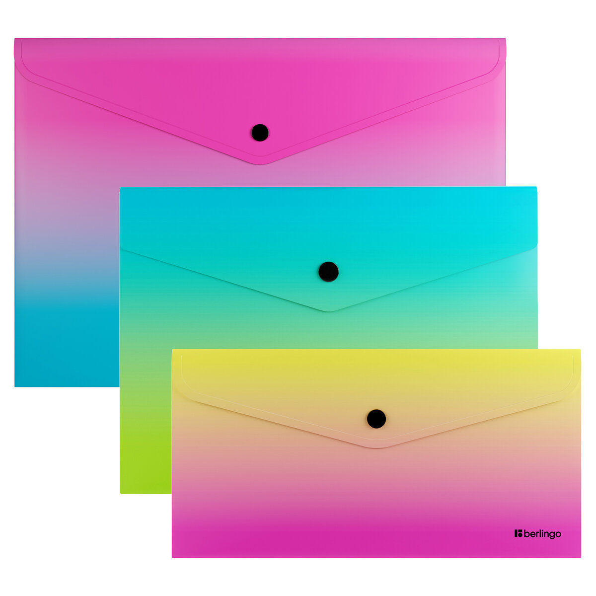 Купить Набор пластиковых папок-конвертов на кнопке Berlingo "Radiance", форматы А4, A5, Travel size, 3шт