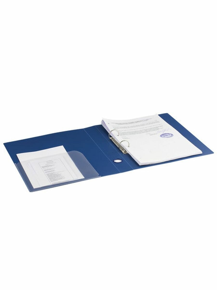 Папка для документов и бумаг А4 на кольцах до 300 листов канцелярская офисная, 40мм, синяя, 0,9мм, Brauberg Стандарт, 221617