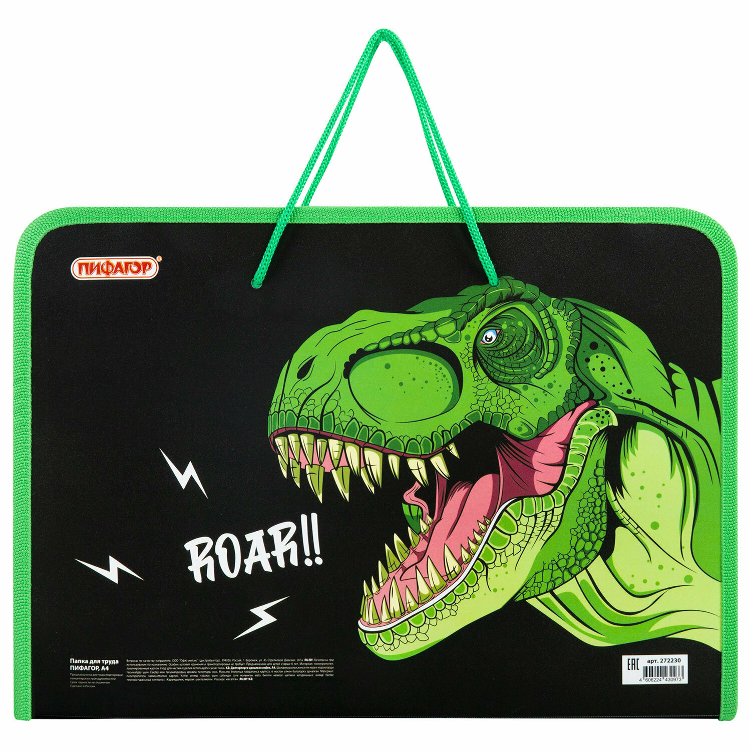 СохранитьПапка для труда на молнии с ручками Пифагор А4, 1 отделение, пластик, органайзер, Dino roar, 272230 интересное: