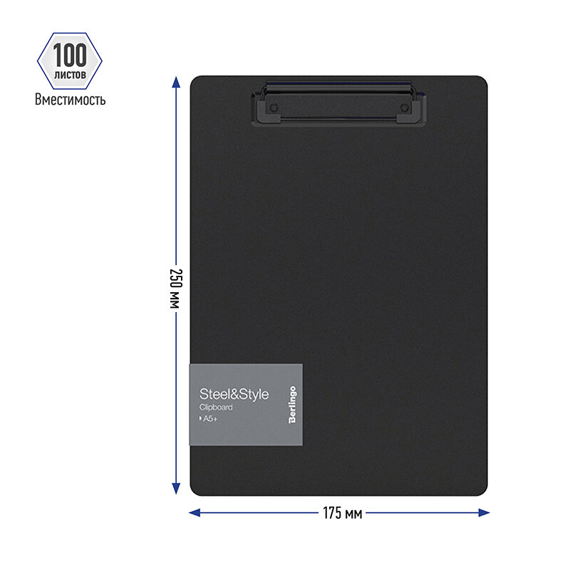 Купить Планшет с зажимом Berlingo "Steel&Style" A5+, 2500мкм, пластик (полифом), черный