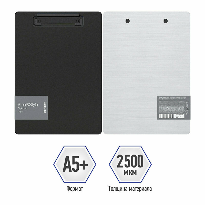 Планшет с зажимом Berlingo "Steel&Style" A5+, 2500мкм, пластик (полифом), черный