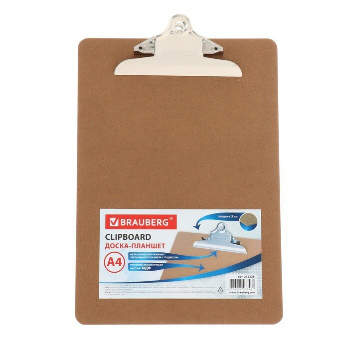 СохранитьПланшет / доска с зажимом для бумаги / документов канцелярская для выступлений Brauberg Eco, А4, (230х326 мм), Мдф, 3 мм интересное: