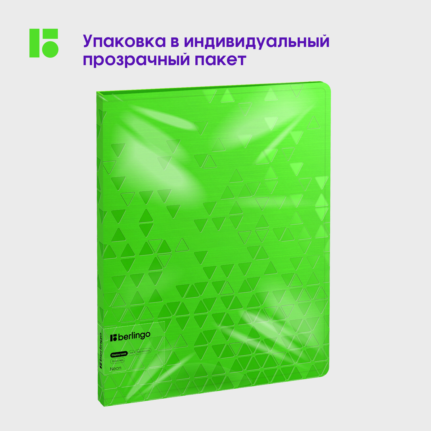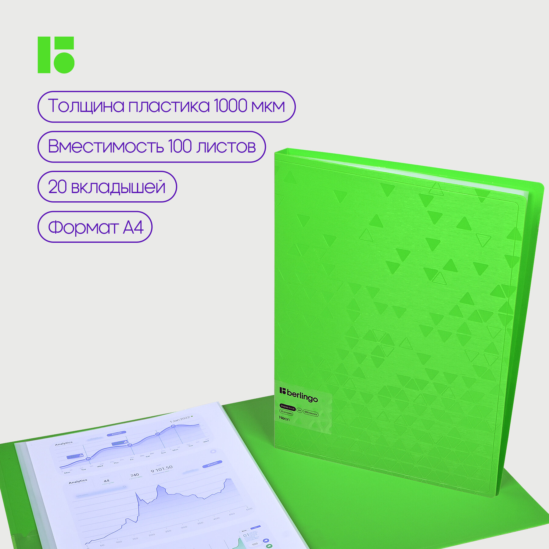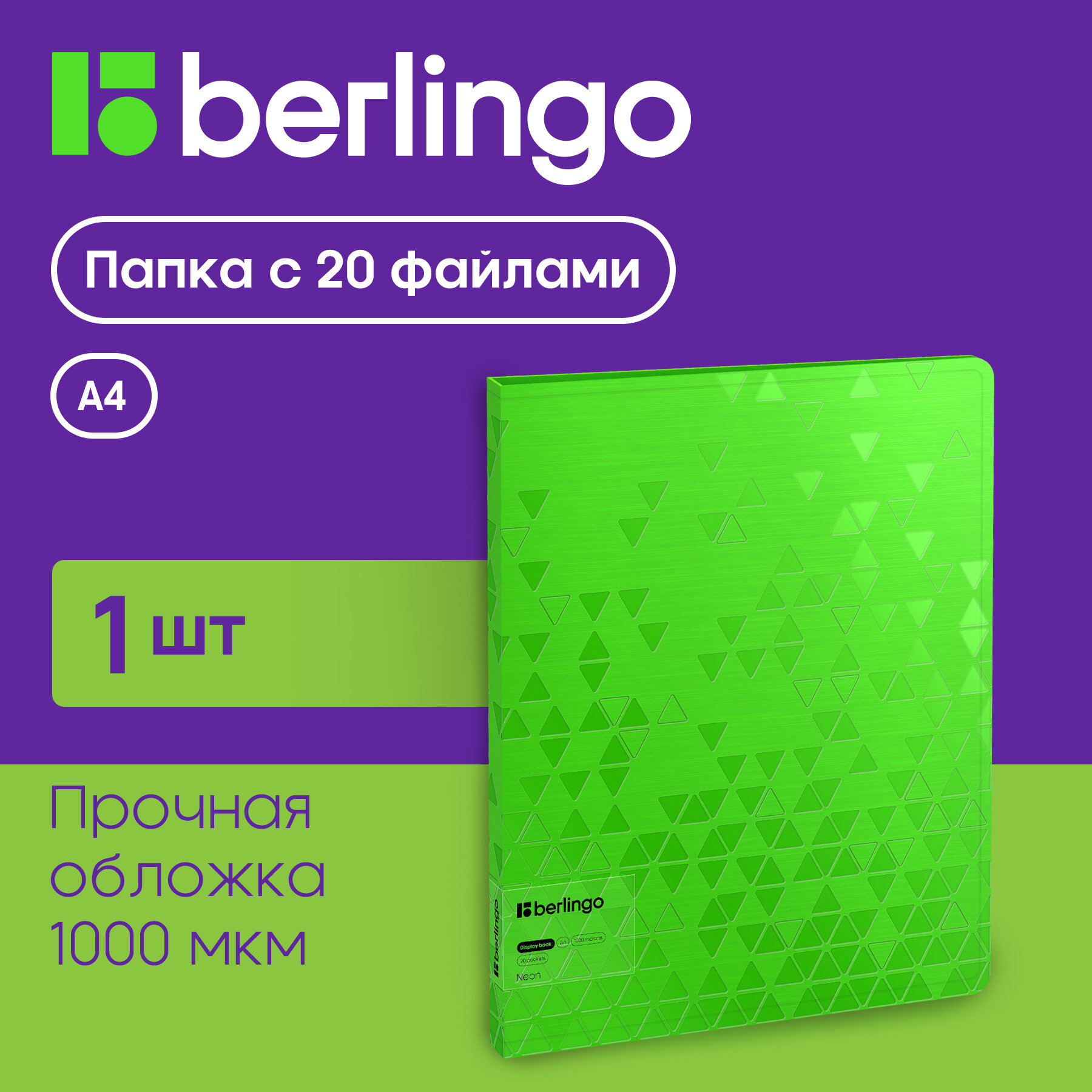 Папка с 20 вкладышами Berlingo Neon, 17мм, 1000мкм, зеленый неон, с внутренним карманом интересное: