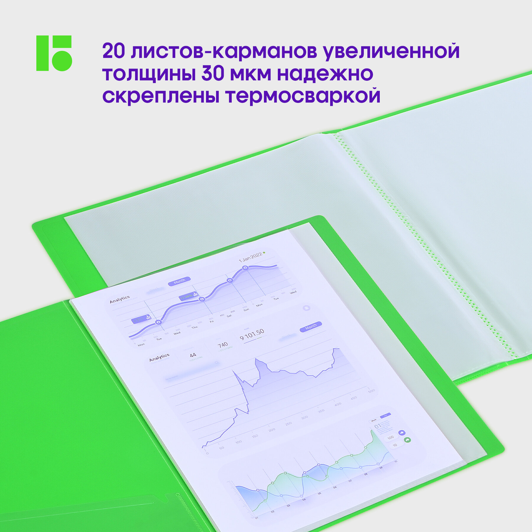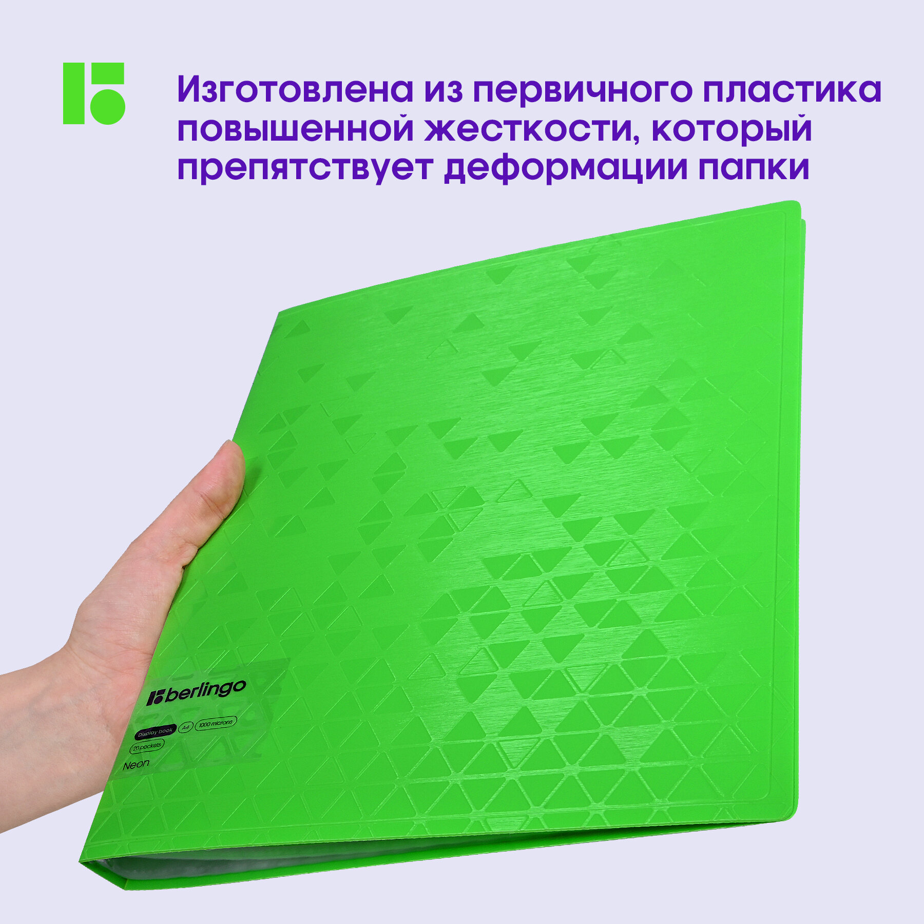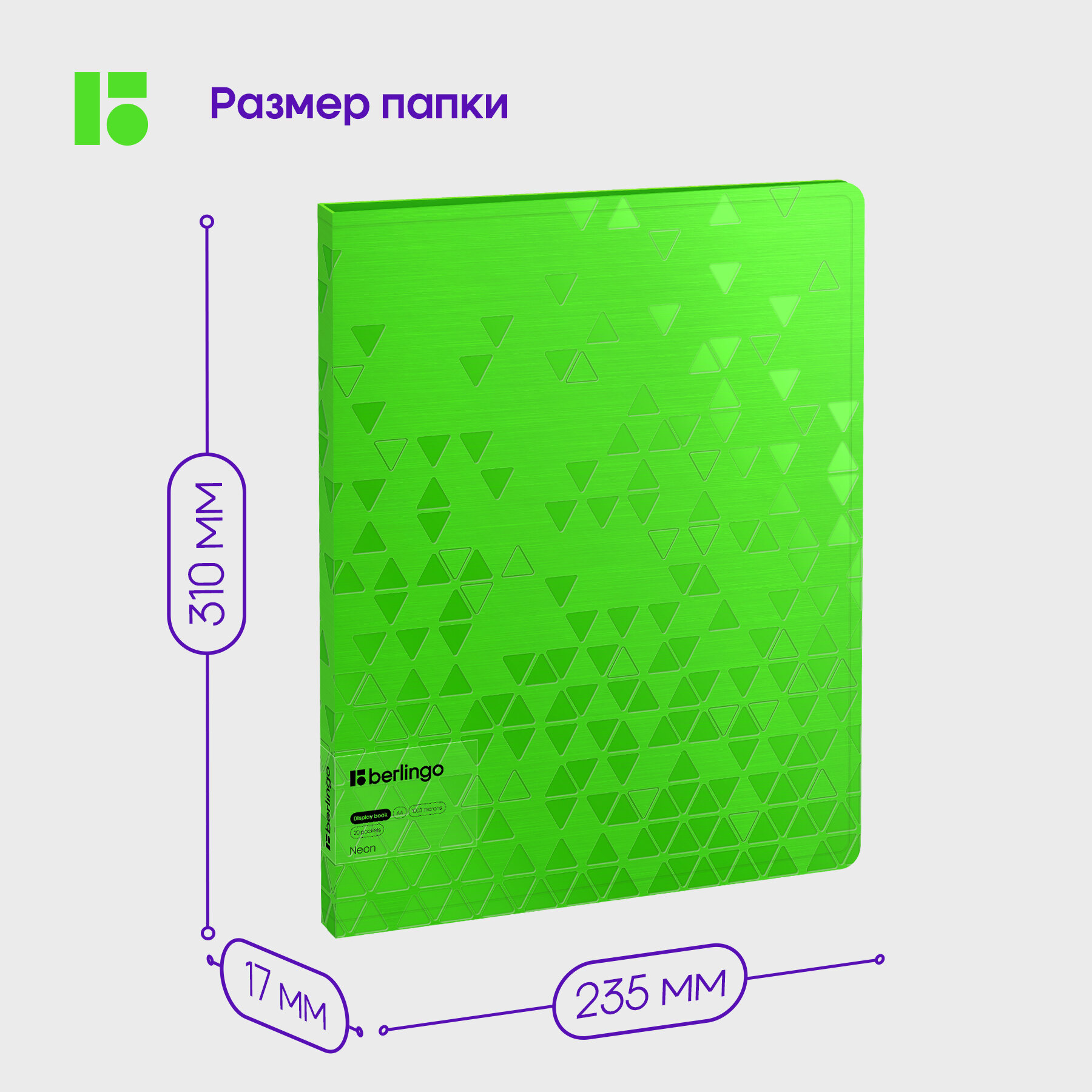 Папка с 20 вкладышами Berlingo Neon, 17мм, 1000мкм, зеленый неон, с внутренним карманом интересное: