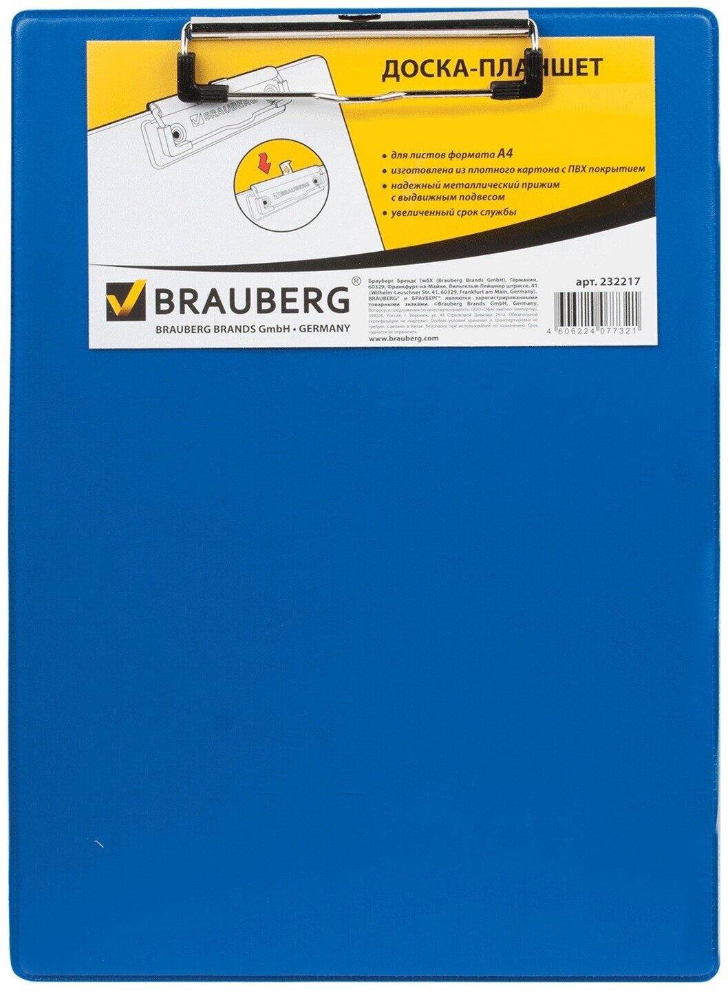Купить Доска-планшет BRAUBERG "NUMBER ONE" с прижимом А4 (228х318 мм), картон/ПВХ, синяя, 232217