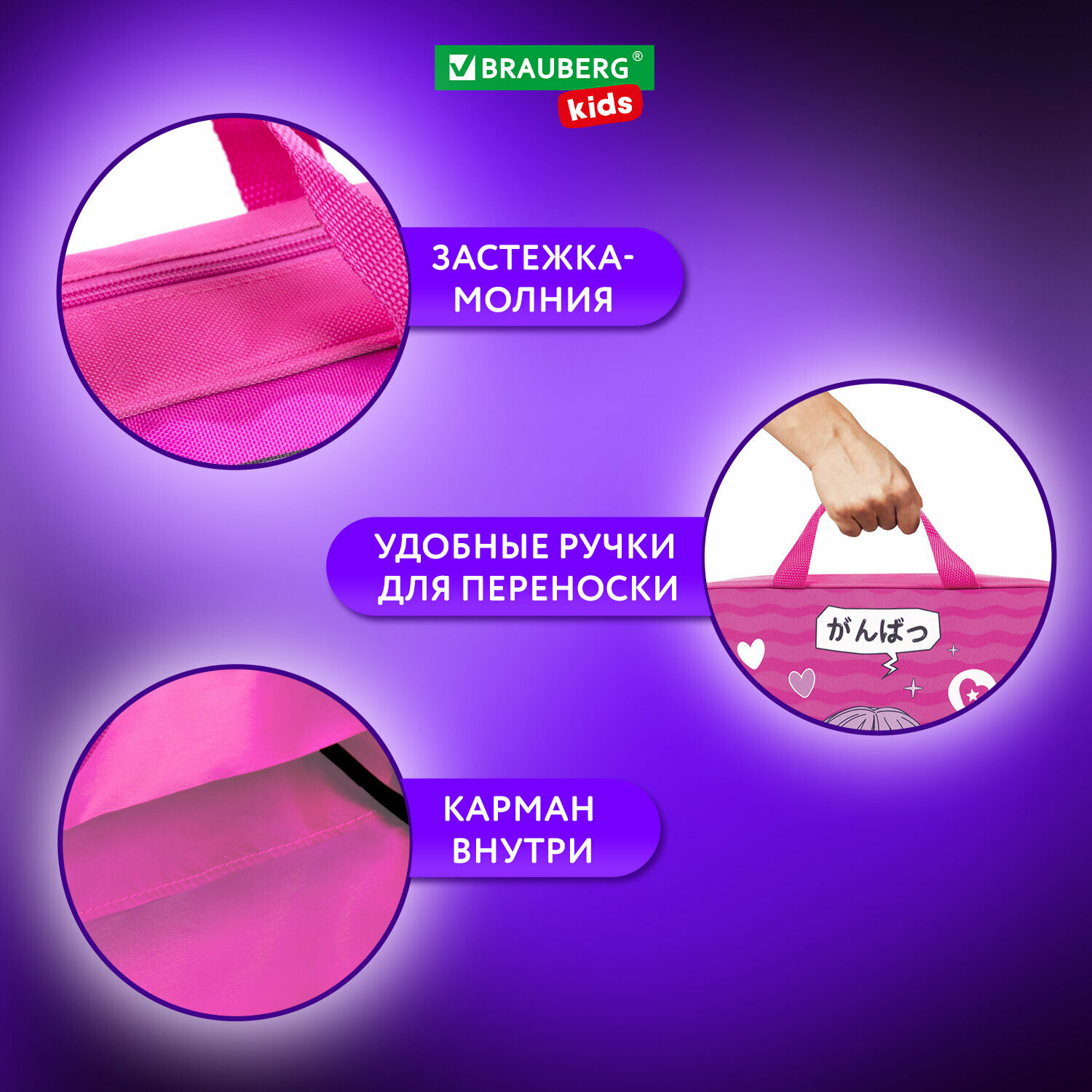 Папка на молнии с ручками Brauberg Kids А4, 1 отделение, полиэстер, 80мм, Anime style, 272121 интересное: