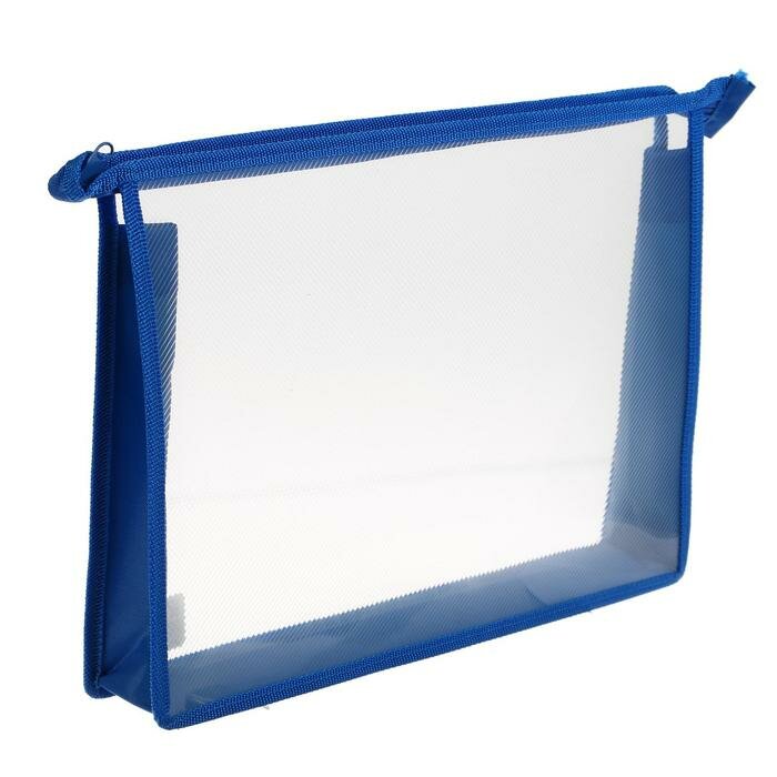 Купить Папка для тетрадей прозрачная А4, молния сверху, синяя (Пчёлка)
