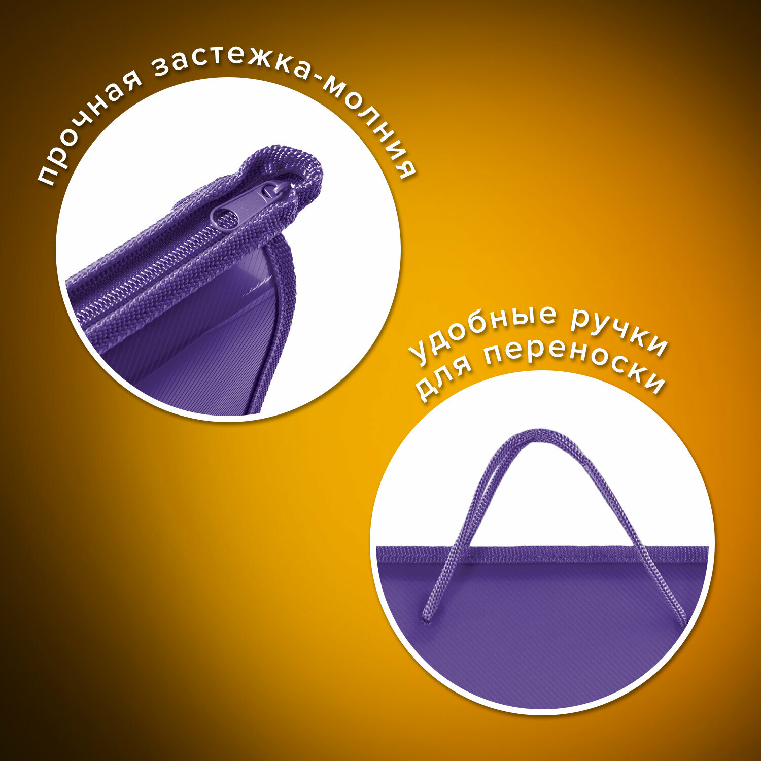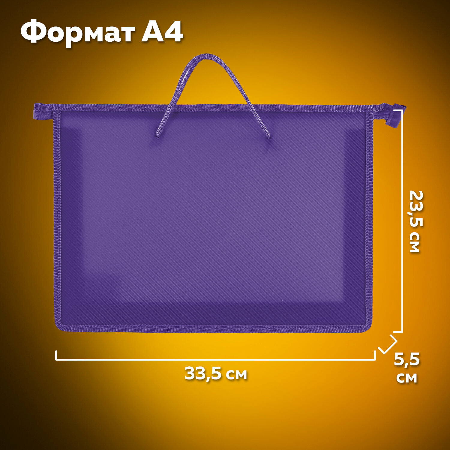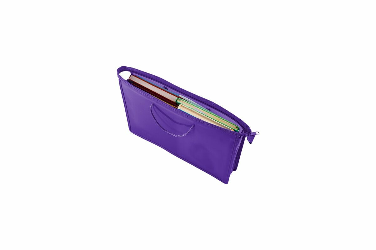 Купить Папка на молнии с ручками пифагор, А4, пластик, молния сверху, однотонная фиолетовая, 228237