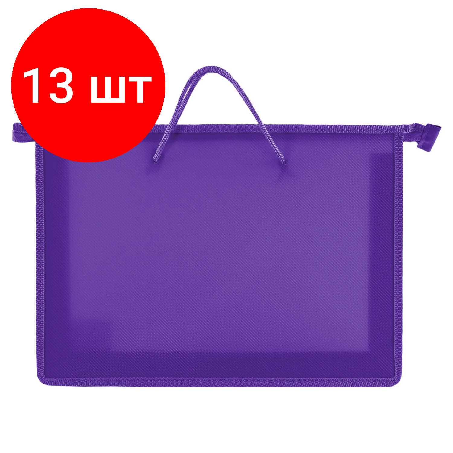 Купить Комплект 13 шт, Папка на молнии с ручками пифагор, А4, пластик, молния сверху, однотонная фиолетовая, 228237