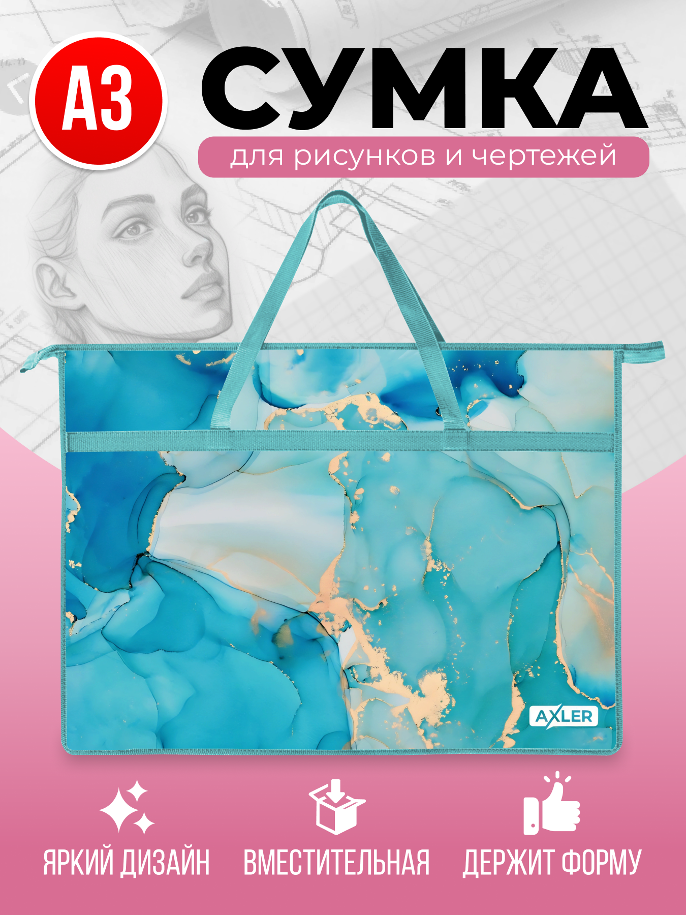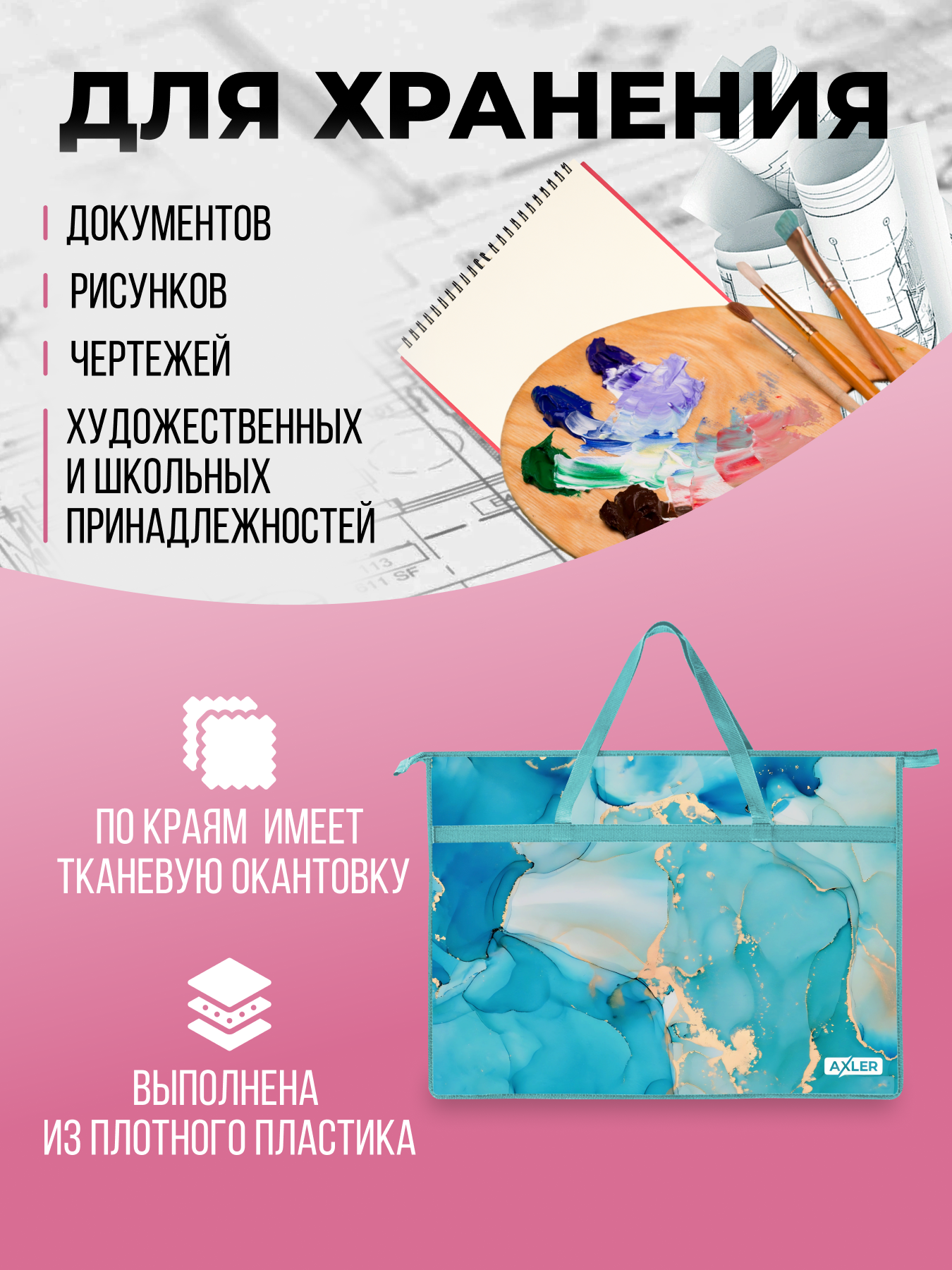Папка А3 с ручками для рисования черчения и труда AXLER, сумка для художников, для рисунков, бумаг, нот и документов на молнии интересное: