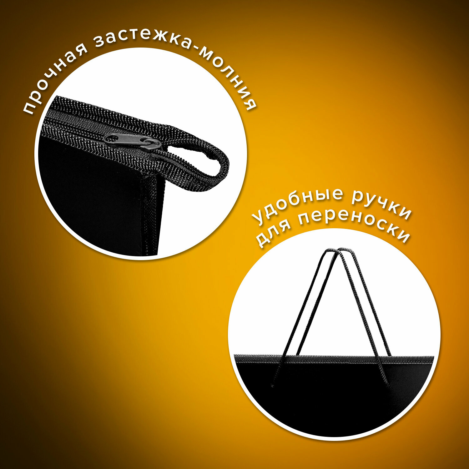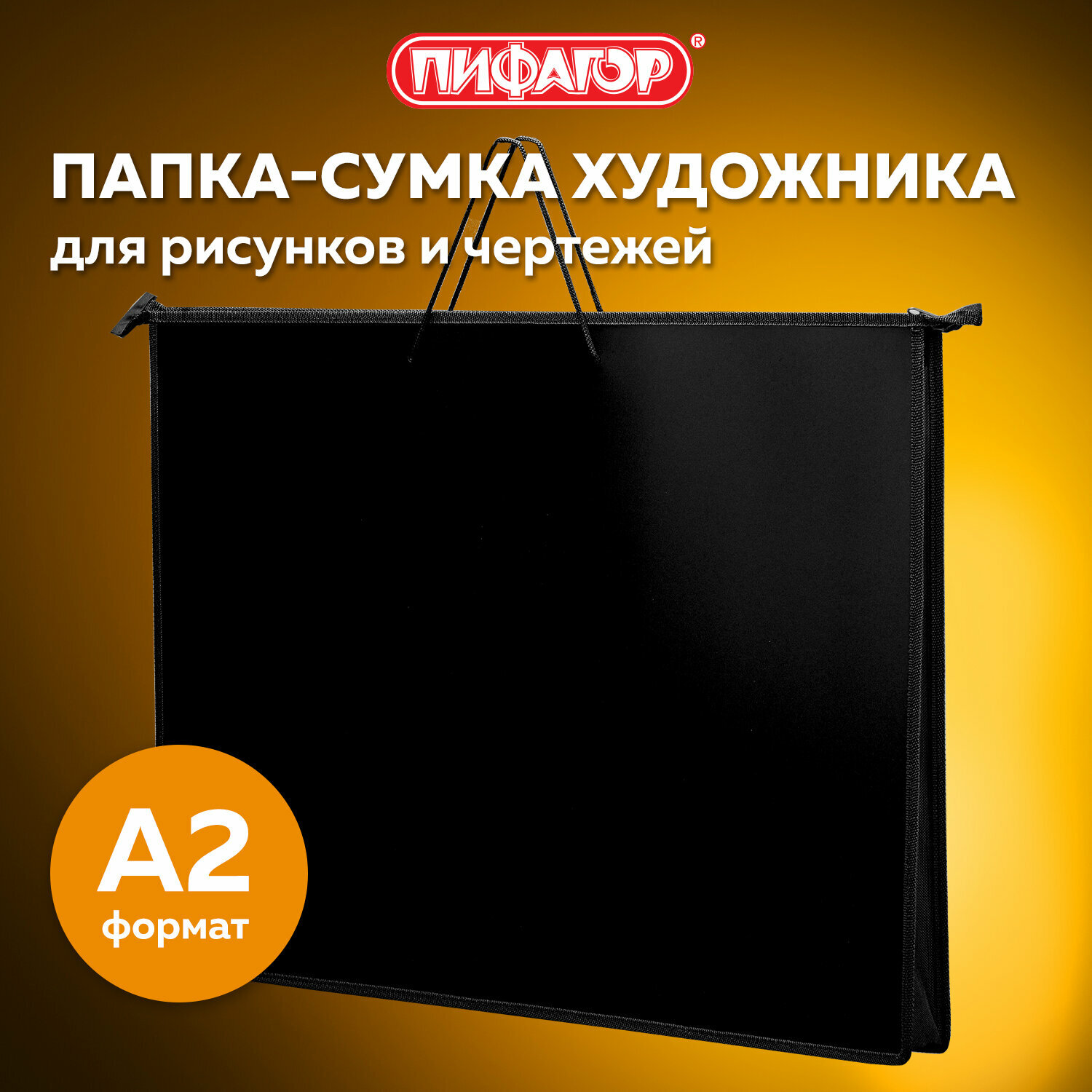 Папка-сумка / портфель для рисунков / чертежей / документов / бумаг / тетрадей / школы А3, ручки-шнурок, пластик, молния сверху, Пифагор, черная