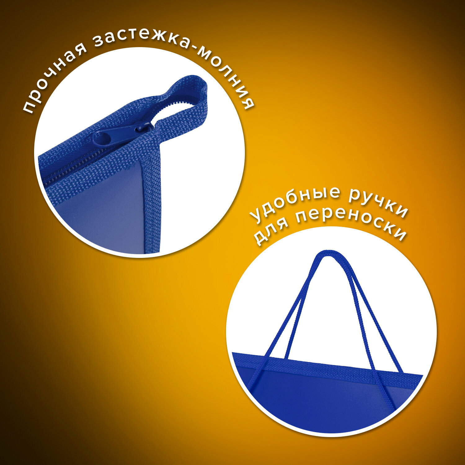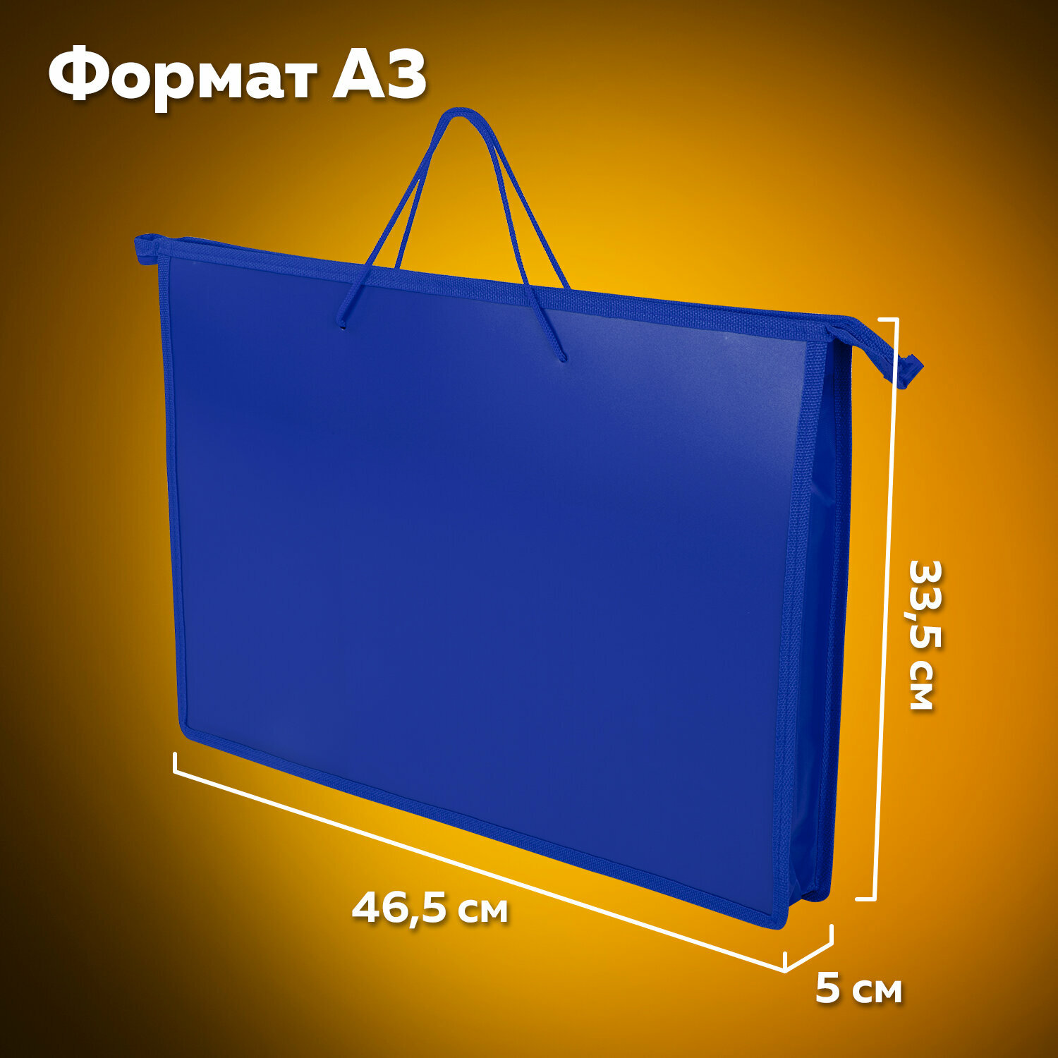 Купить Папка-сумка портфель для рисунков, документов, для школы А3, ручки-шнурок, пластик, молния сверху, Пифагор, синяя