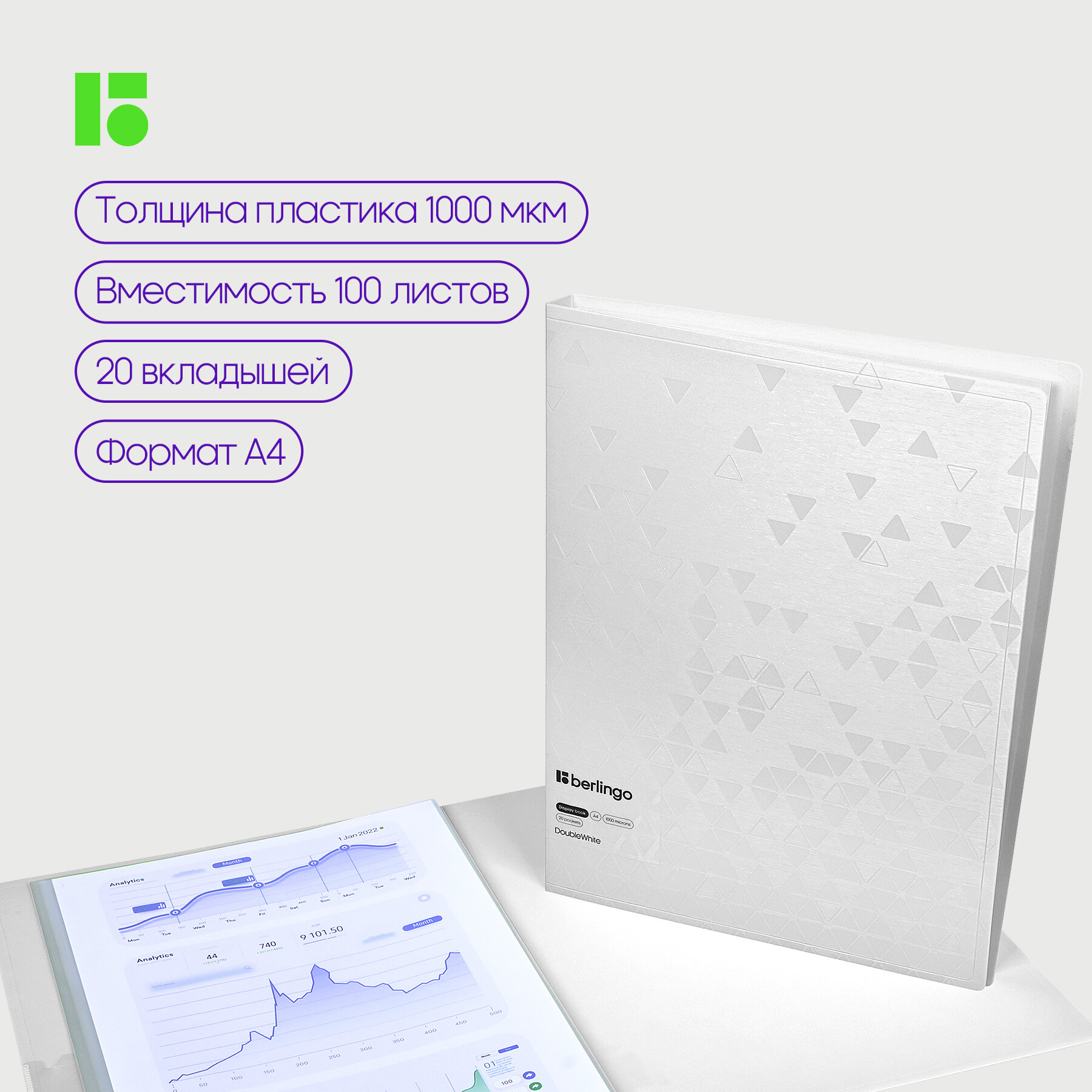 Папка с 20 вкладышами Berlingo "DoubleWhite", 17мм, 1000мкм, белая, с внутр. карманом интересное: