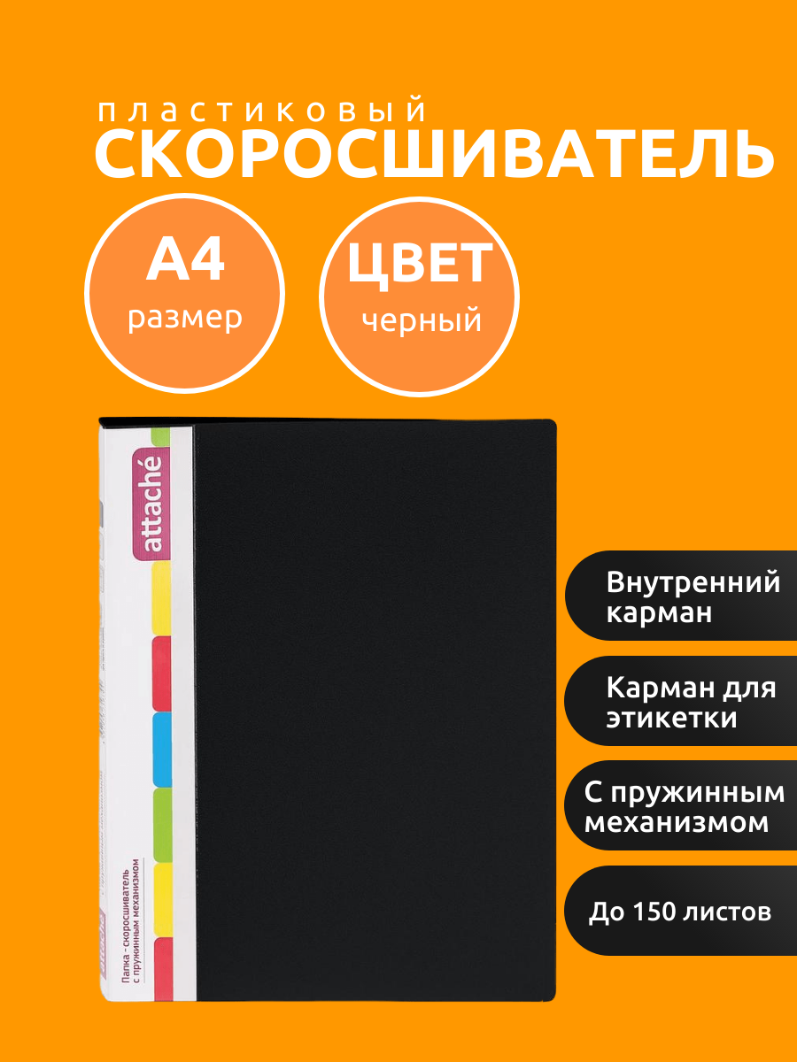 СохранитьПапка скоросшиватель Attache с пружинным механизмом, черный (33053) интересное: