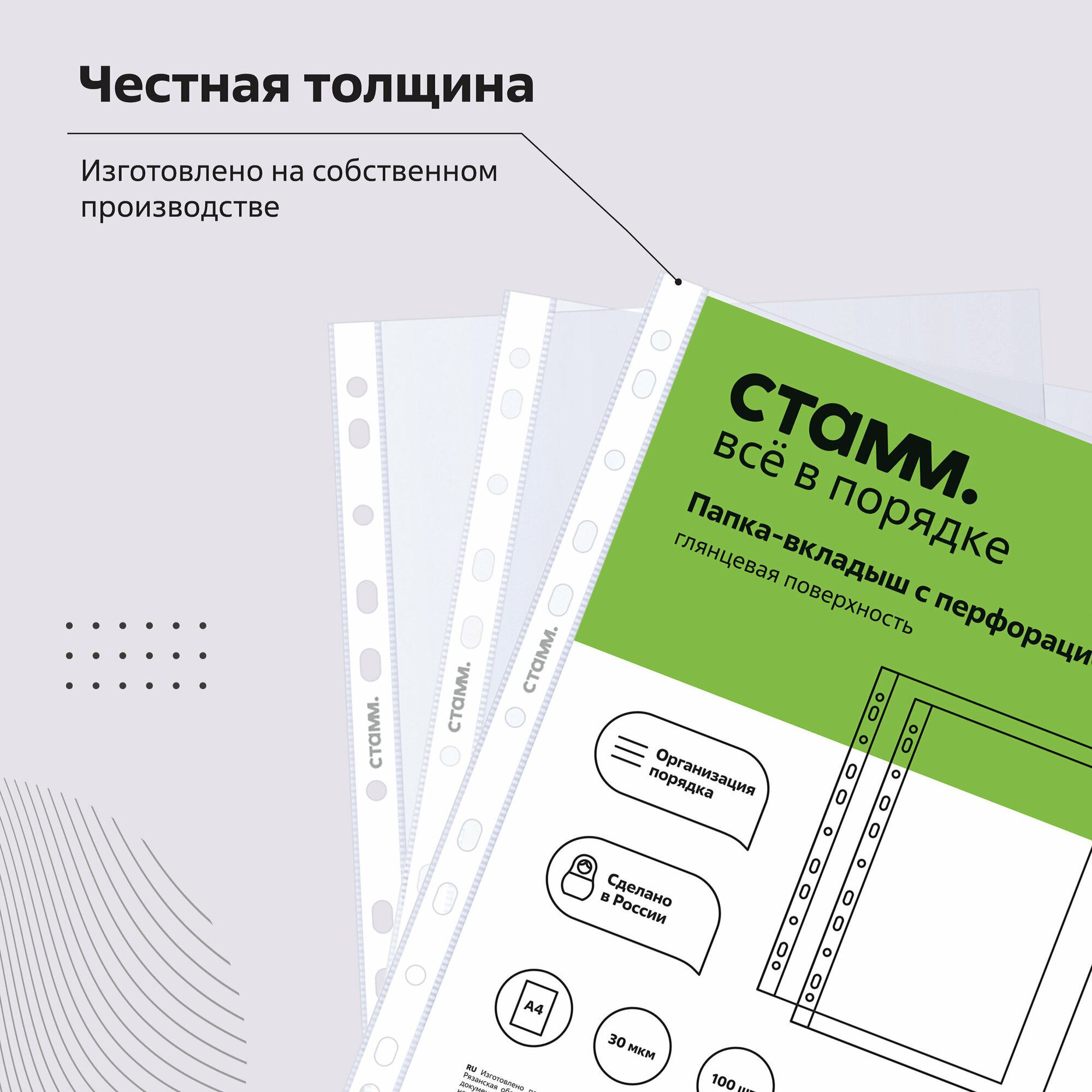 Файл-вкладыш с перфорацией Стамм (А4, 20мкм, матовый) (ММ-30670), 100шт.