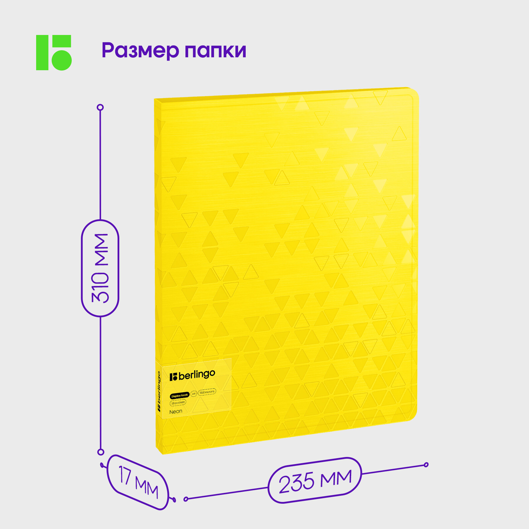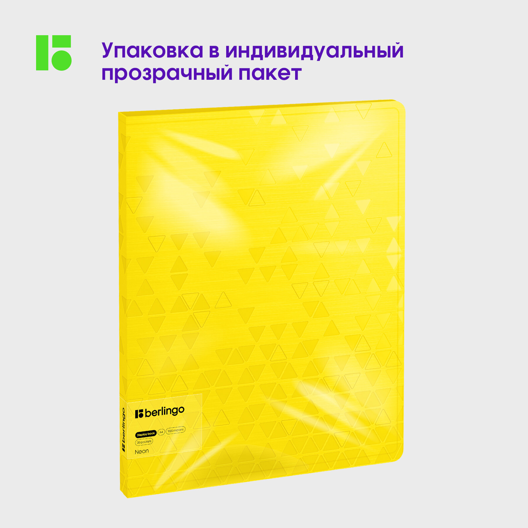 Папка с 20 вкладышами Berlingo "Neon", 17мм, 1000мкм, желтый неон, с внутр. карманом интересное: