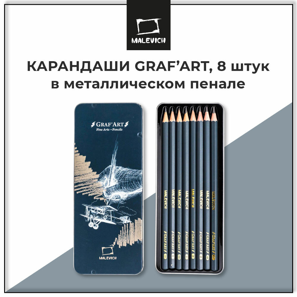 Набор чернографитных карандашей Малевичъ Graf'Art, металлическая коробка, 8 шт интересное: