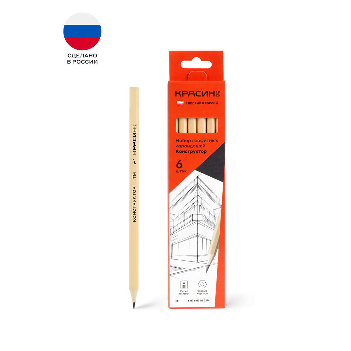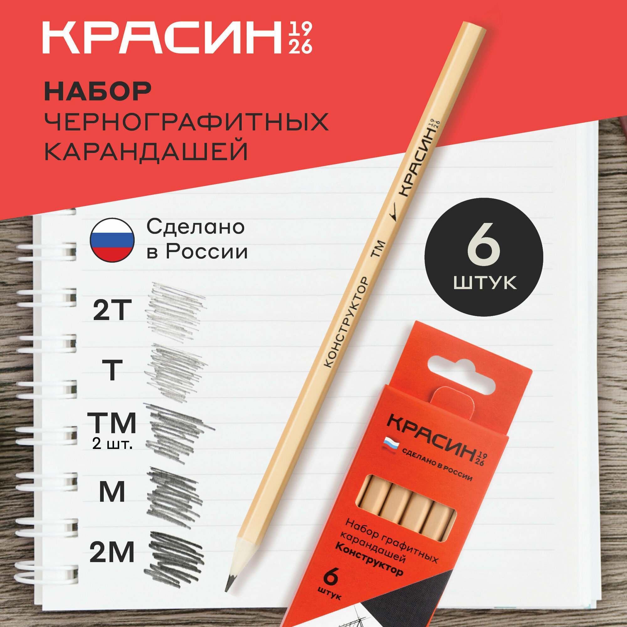 Купить Карандаш простой для школы 2H-HB / Набор простых карандашей для рисования и офиса из 6 штук Красин "Конструктор" / чернографитные карандаши