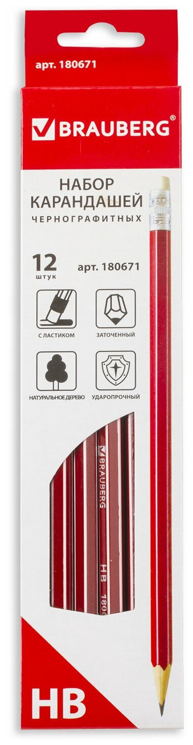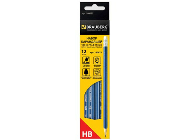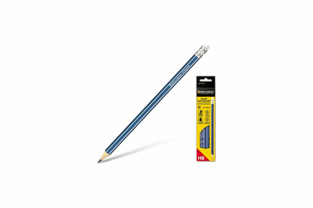 Карандаши простые чернографитные Brauberg Набор 12 шт., Ztx, Hb, с резинкой / ластиком, синий корпус, картонная упаковка интересное: