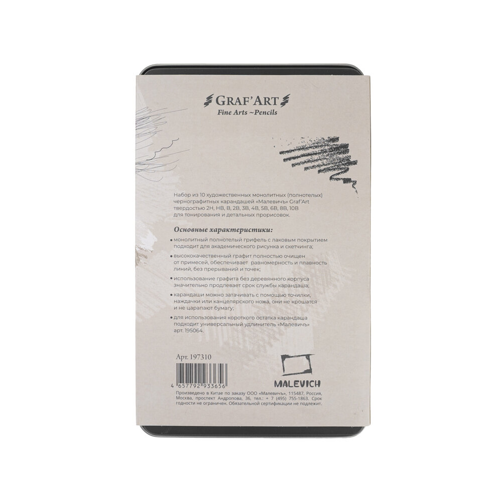Набор монолитных графитных карандашей Малевичъ GrafArt, 10 шт интересное: