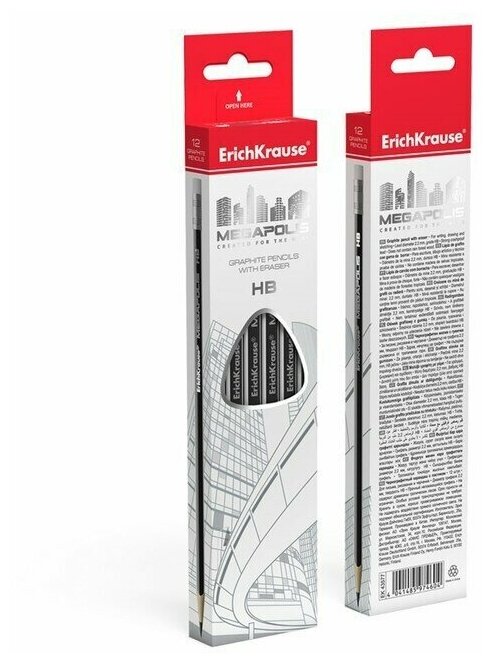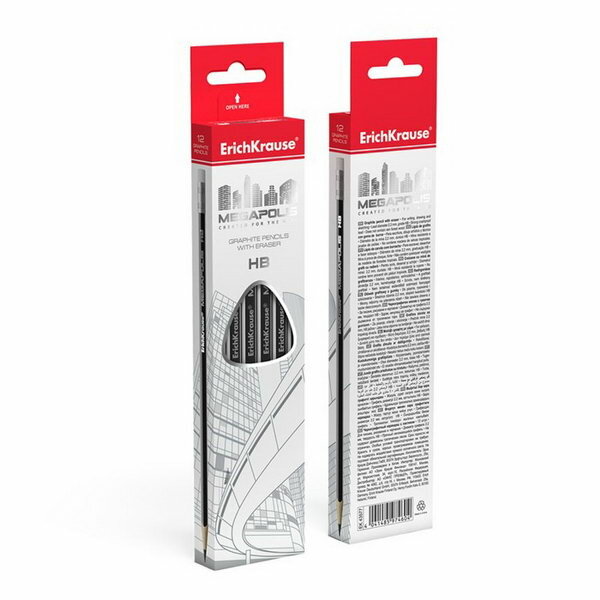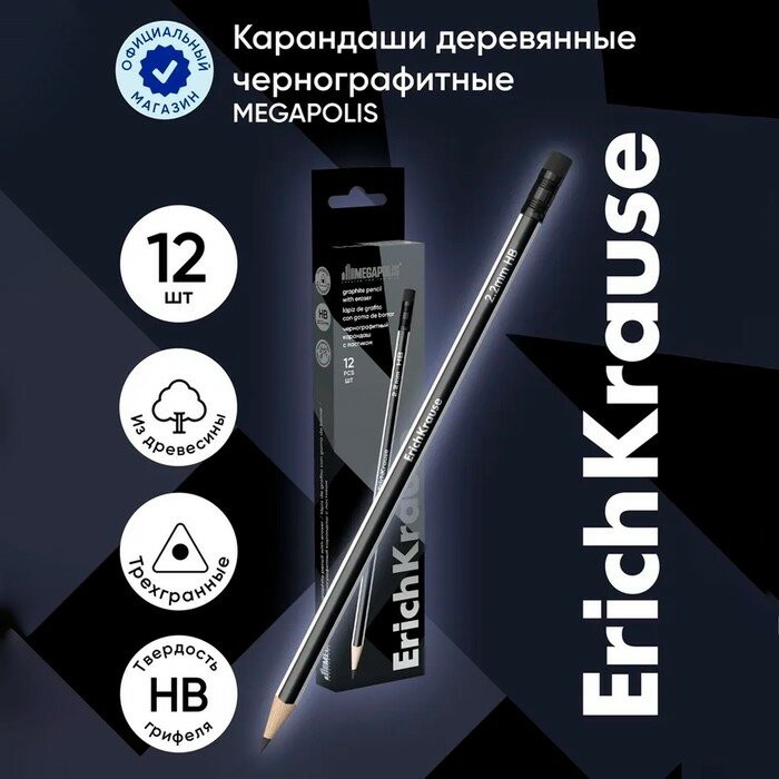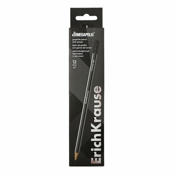 Карандаш чернографитный трехгранный с ластиком ErichKrause MEGAPOLIS HB (12 шт. в упаковке) интересное: