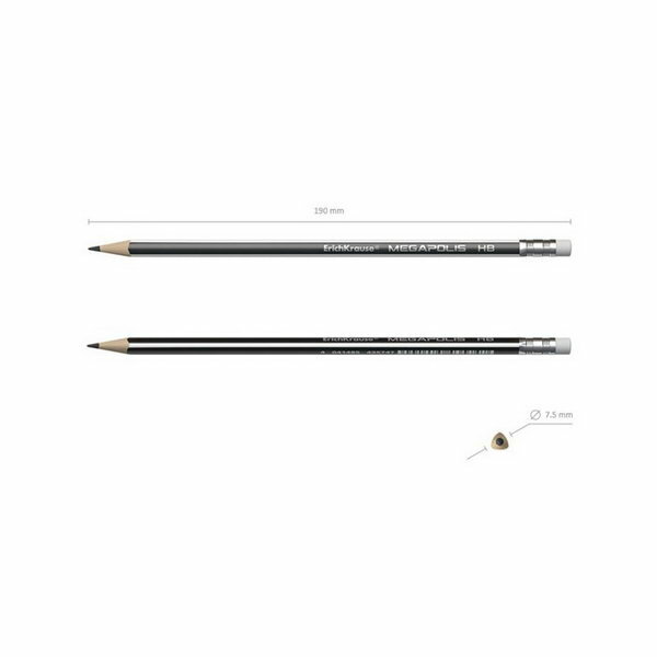 Купить Карандаш чернографитный трехгранный с ластиком ErichKrause MEGAPOLIS HB (12 шт. в упаковке)