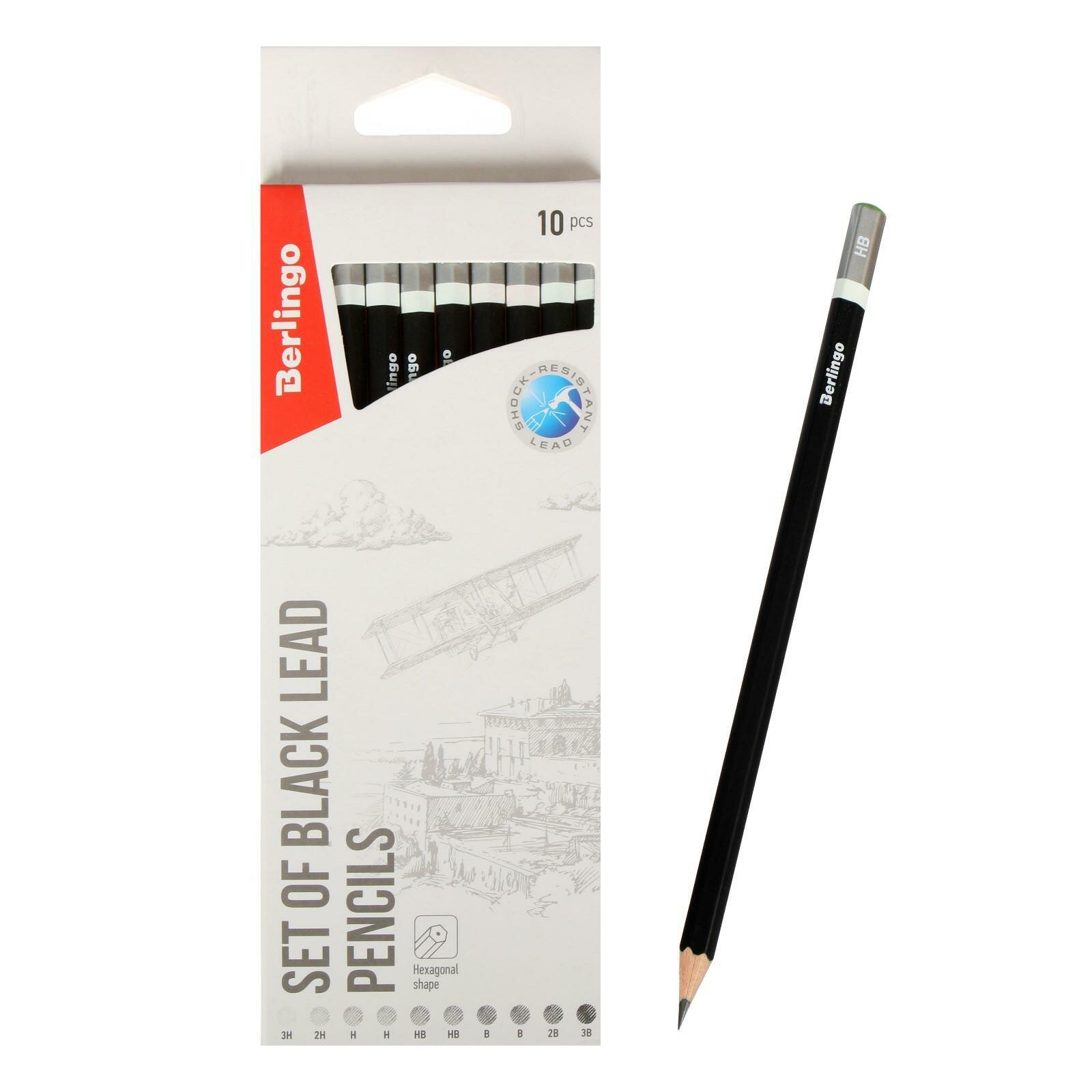 Набор чернографитных карандашей Berlingo шестигранные 10 шт, 3H-3B (Berlingo BS01210)